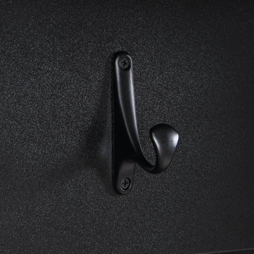 - Heavy-duty hooks: Six black aluminum hooks (11 lb capacity per hook) provide secure hanging for coats, bags, and umbrellas.