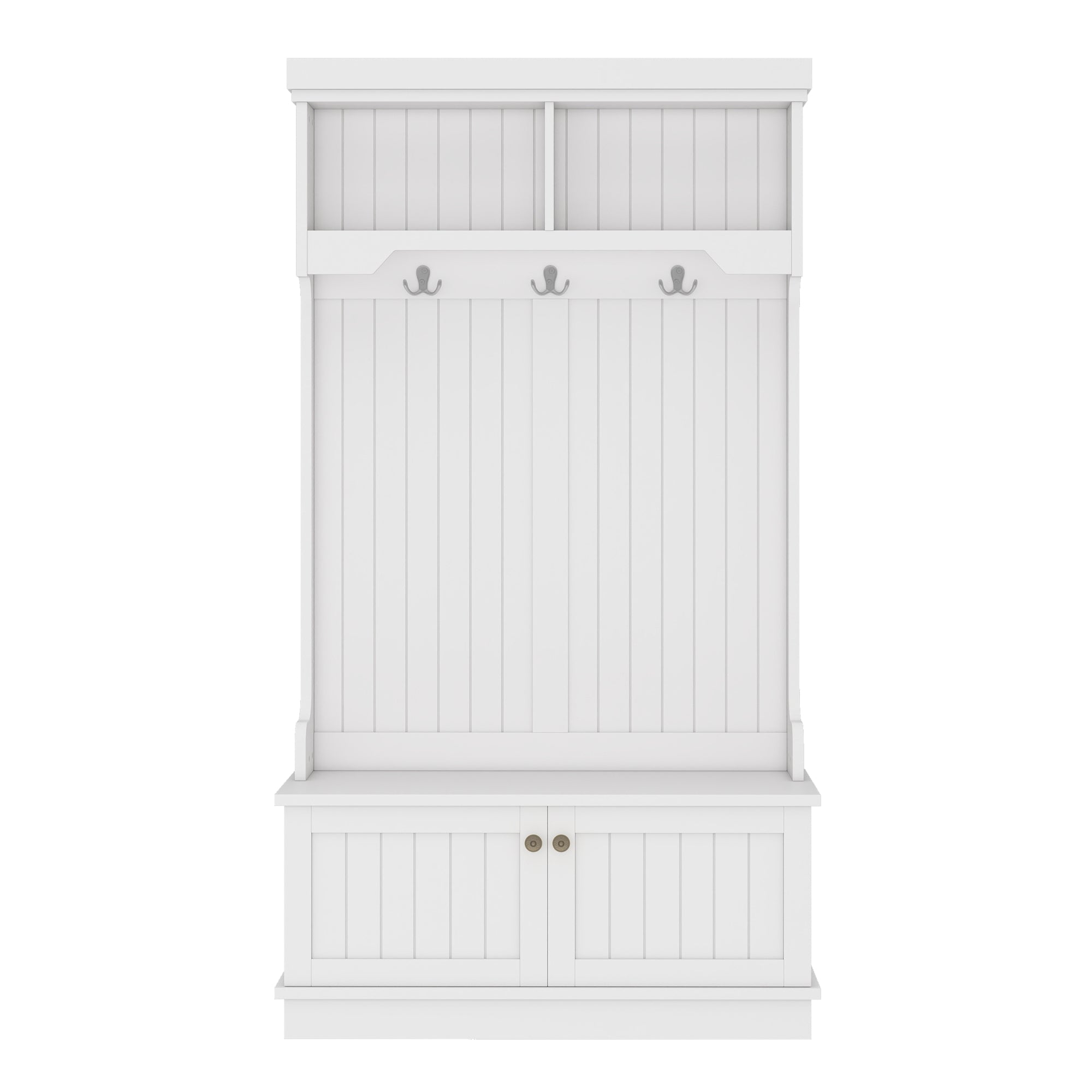 Organize and elevate your entryway with this versatile 4-in-1 hall tree that combines a coat rack, bench, shoe storage, and hooks into one stylish piece. Its clean white finish and streamlined silhouette suit a wide range of décor styles, while sturdy construction provides reliable everyday use—perfect for families, roommates, or busy households that need a compact, attractive storage solution.