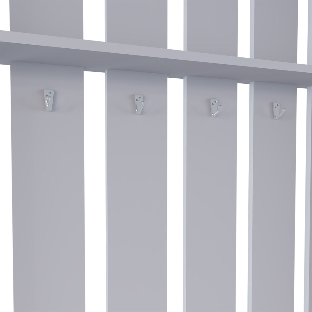 - Hanging storage: Four durable hooks for coats, bags, scarves, or hats to keep entryways clutter-free