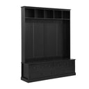Bring order and style to your entryway with this elegant, multifunctional hall tree that combines seating, storage, and hanging space in a compact, retro-inspired design. Thoughtfully crafted with durable MDF, metal hardware, and a smooth painted finish, it’s built to withstand daily use while enhancing your mudroom, foyer, or living room with clean lines and vintage black handles.