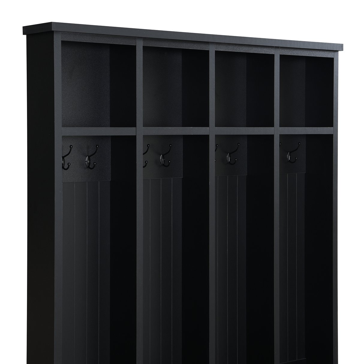 - Ample Storage Capacity: The 8 large compartments at the base and top are perfect for storing shoes, bins, or seasonal items. While the product has 8 retro hooks, providing easy access to coats, scarves, and bags, ensuring everything stays organized and within reach.