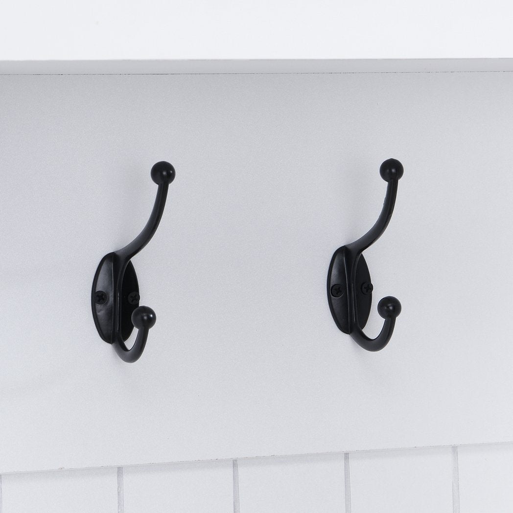 - 3-in-1 functionality: Integrated bench, 8 metal hooks, and multiple open compartments provide seating, hanging storage, and space for shoes or baskets.