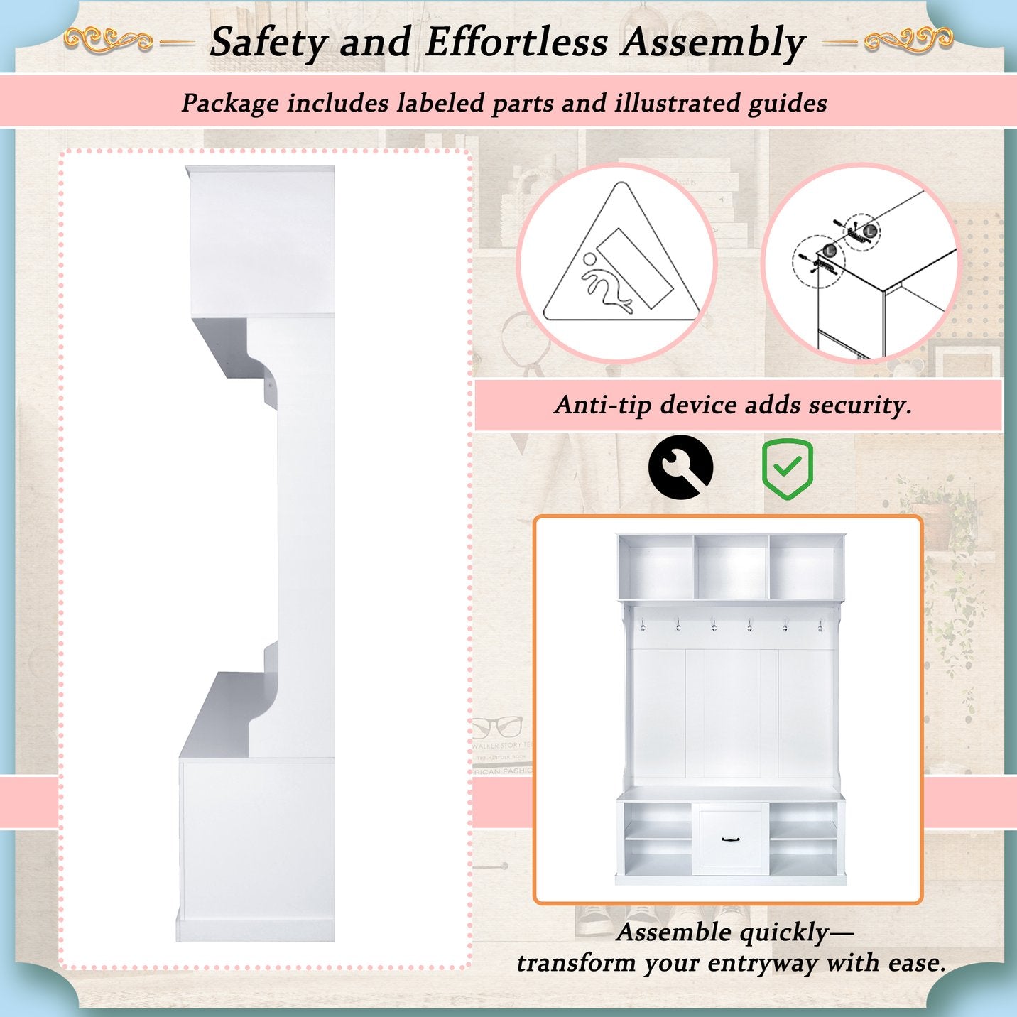 Bring order and style to your entryway with this versatile 3-in-1 hall tree that combines a bench, coat hanging area, open shelving and a roomy drawer. Thoughtfully designed for busy households, it offers durable construction, ample storage, and a clean modern look that complements a variety of decors — from retro living rooms to contemporary minimalist spaces.