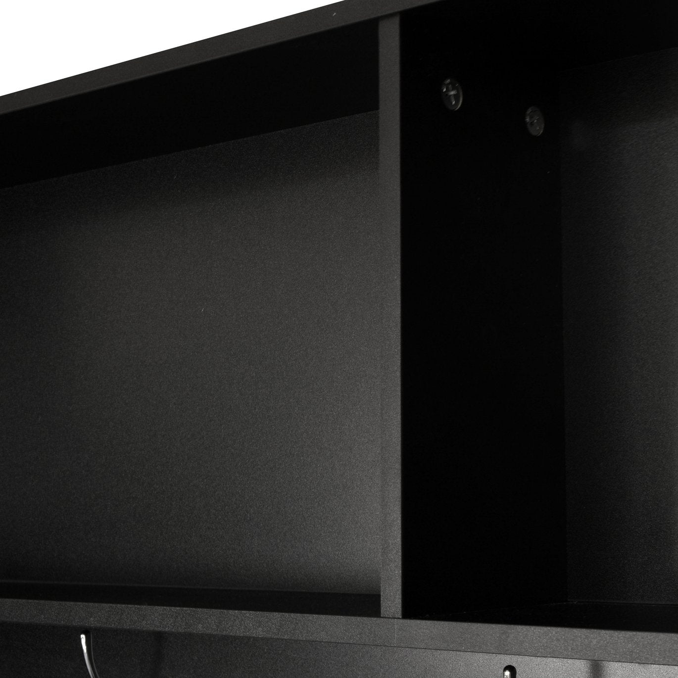 - Displaying exquisite decorations, the two spacious shelves on the upper level serve their purpose perfectly. Hanging clothes, scarves, bags, and other daily necessities with ease, the seven sturdy and durable hooks equip the space, enhancing organization in your life. Providing unprecedented ease and fun when putting on and taking off shoes, the comfortable shoe bench transforms every entry and exit of the house into a pleasure.
