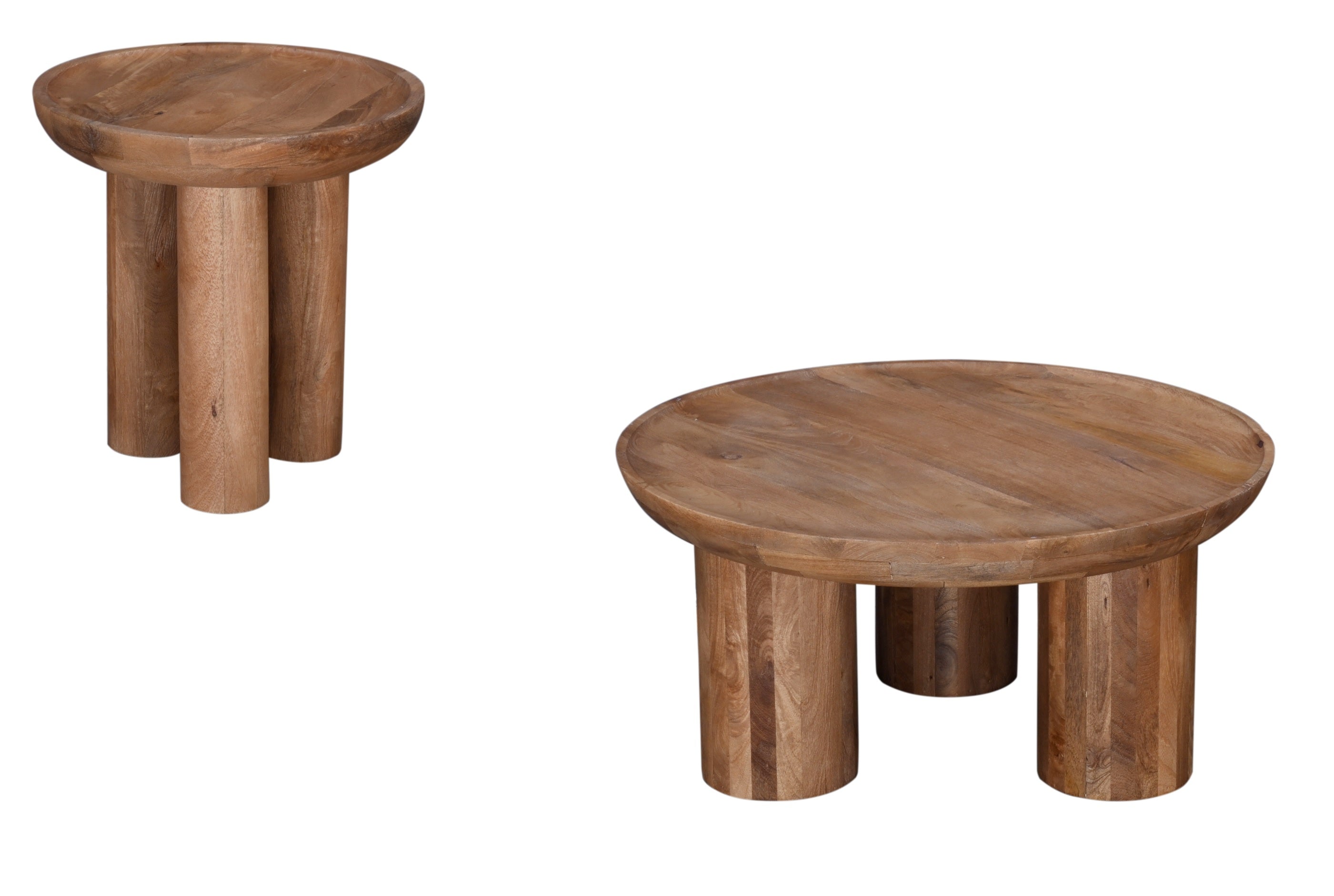 - The table's unique features include a striking drum-style silhouette, an oversized round three-legged base, and a scooped concave top, ensuring it stands out as a true statement piece