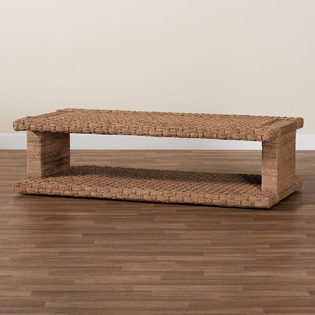 Bring coastal calm and boho texture to your living room with this handwoven seagrass coffee table. Crafted in Indonesia, the Rhinos blends natural materials and clean lines for a relaxed yet refined centerpiece. Its rectangular top and lower open shelf provide generous surface area for décor and everyday essentials, while the basketweave seagrass adds organic warmth and visual interest. The table arrives fully assembled for immediate use and complements coastal, rustic, and modern-bohemian interiors.