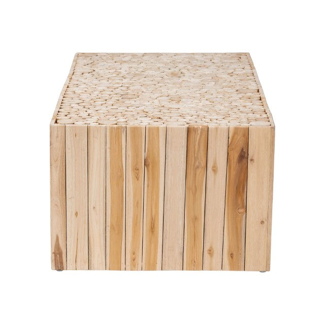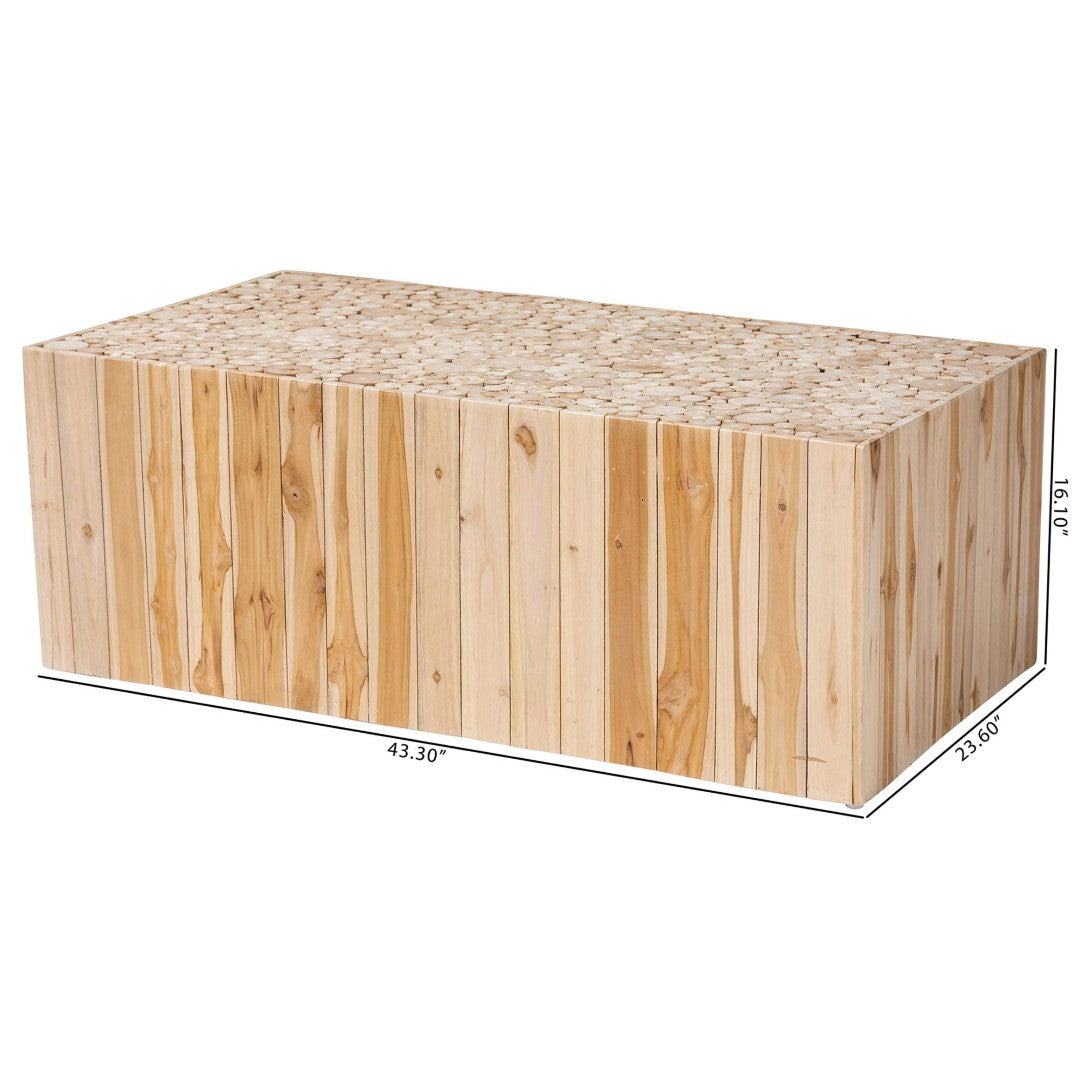 Transform your living room into a serene rustic retreat with the Grayson coffee table — a handcrafted centerpiece that blends bohemian style with durable, sustainable materials. Made in Indonesia from solid teak and repurposed wood logs, its sculptural base and natural finish create a striking focal point that’s as practical as it is artful. Each table is individually carved by skilled artisans, so every piece carries its own organic character and subtle variations.
