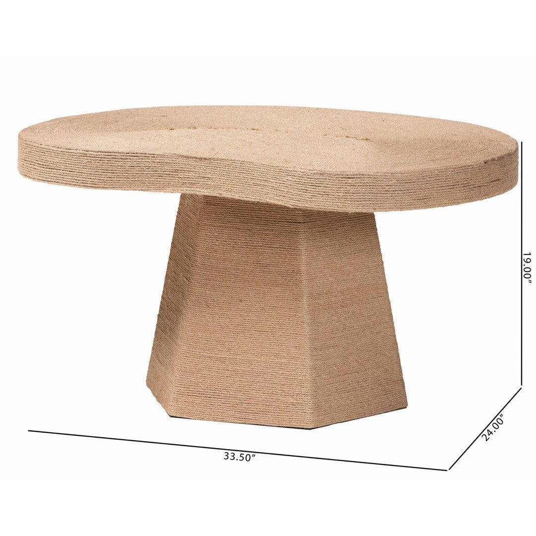 Give your living room a sculptural focal point with this handcrafted Lenka coffee table, where artisanal texture meets modern geometry. Handwoven jute wraps a sturdy engineered wood frame to create an organic, tactile surface; an irregular tabletop and distinctive pedestal base combine form and function for a relaxed yet refined aesthetic that complements minimalist, bohemian, and eclectic interiors. Arrives fully assembled and ready to elevate your lounge or seating area.