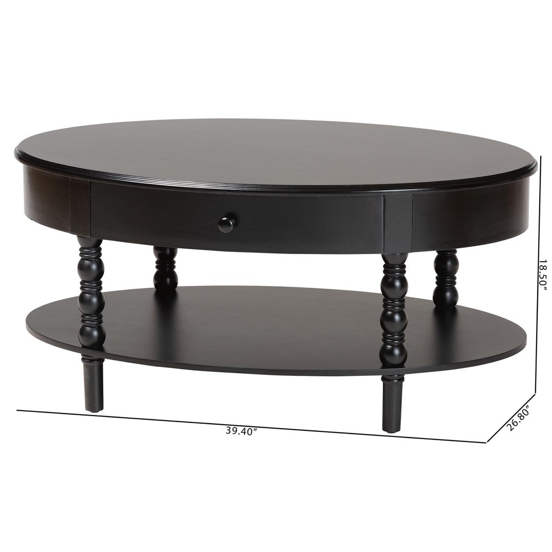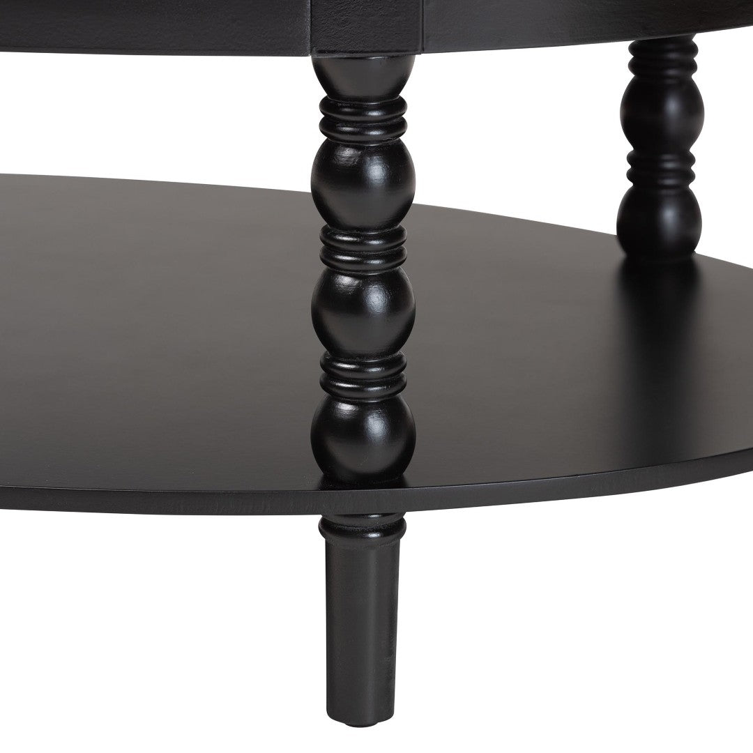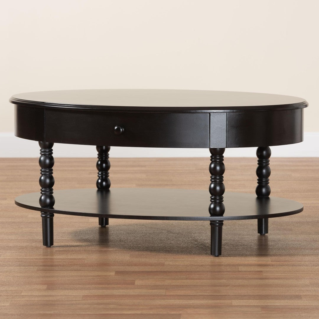 Bring classic charm and practical storage to your living room with the Malinda coffee table. Its oval silhouette, spindle legs with ring-turned detailing, and a thoughtfully sized drawer and open shelf combine to create an elegant focal point that complements both traditional and transitional interiors. Built from firwood and engineered wood, this piece balances durability with refined design.