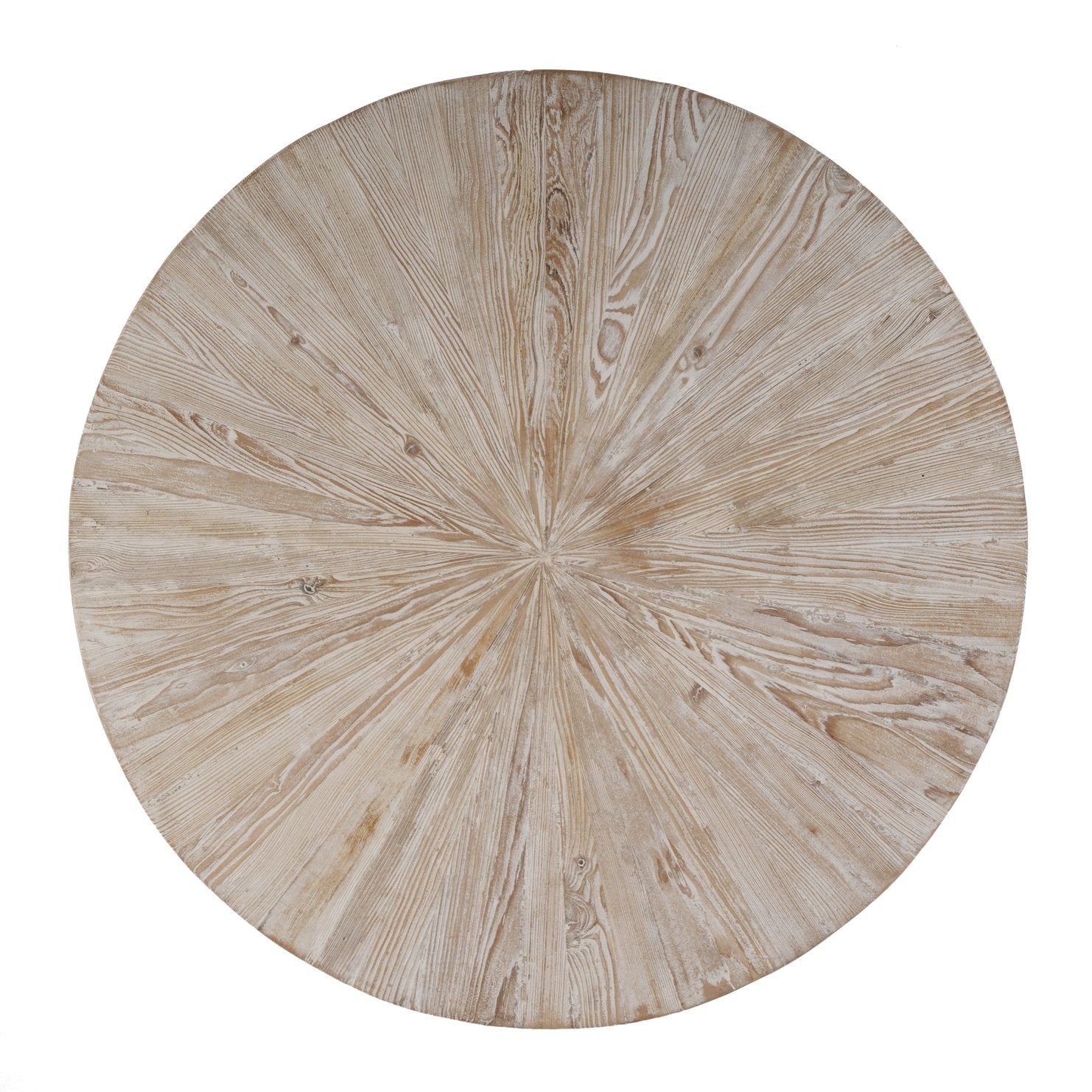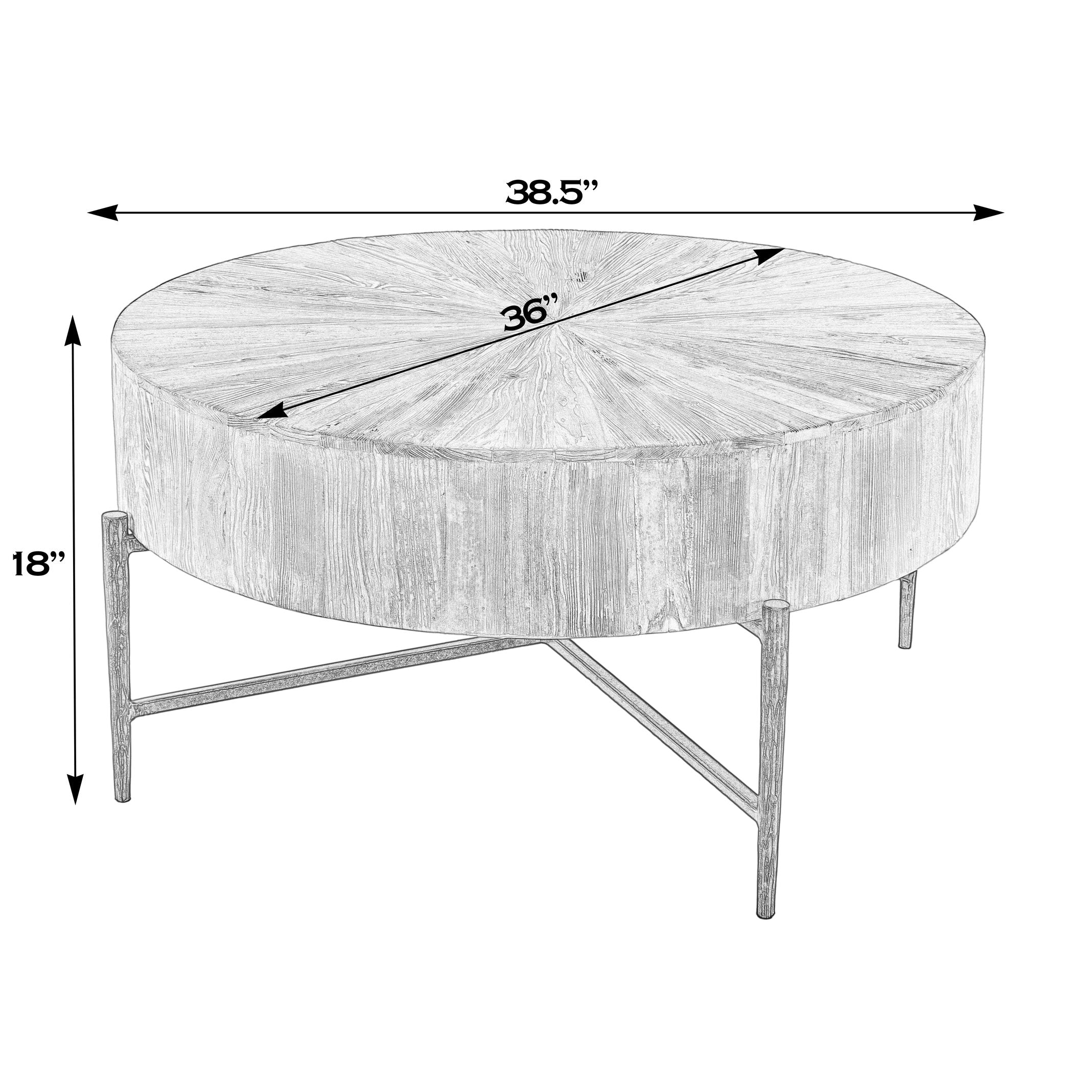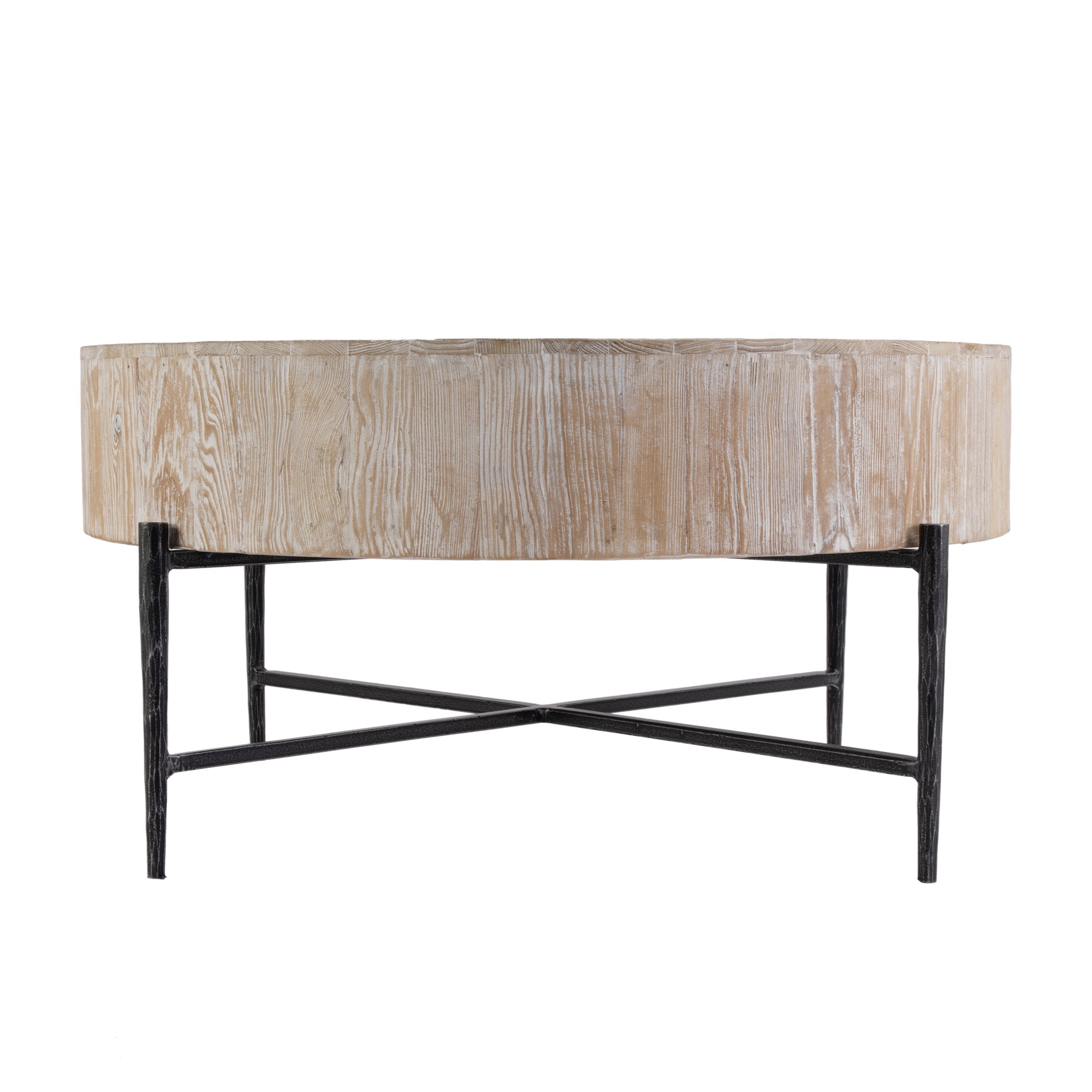 - Product Features (Construction Details): Construction Details: Reclaimed wood top with a distressed white-washed finish achieved through bleaching, and finished in lacquer coating for protection with a hollow interior, closed bottom and iron base