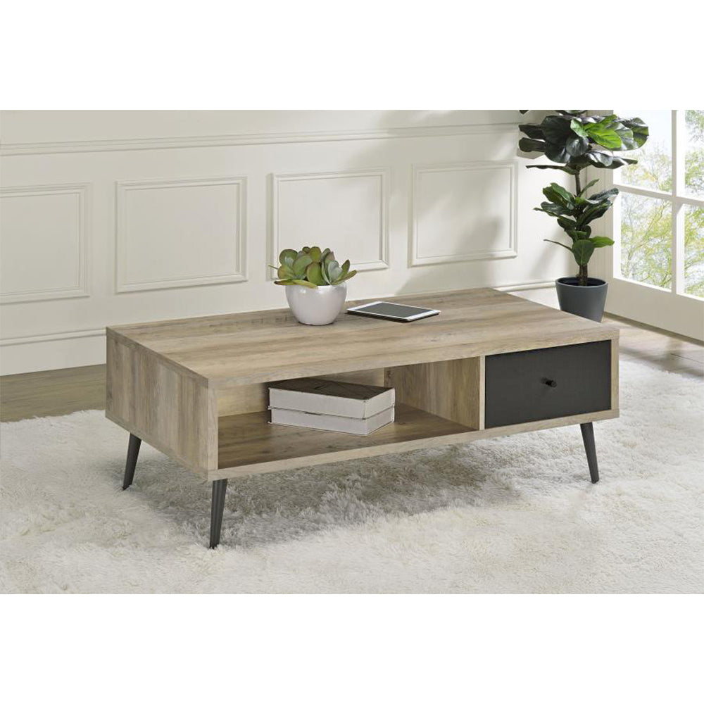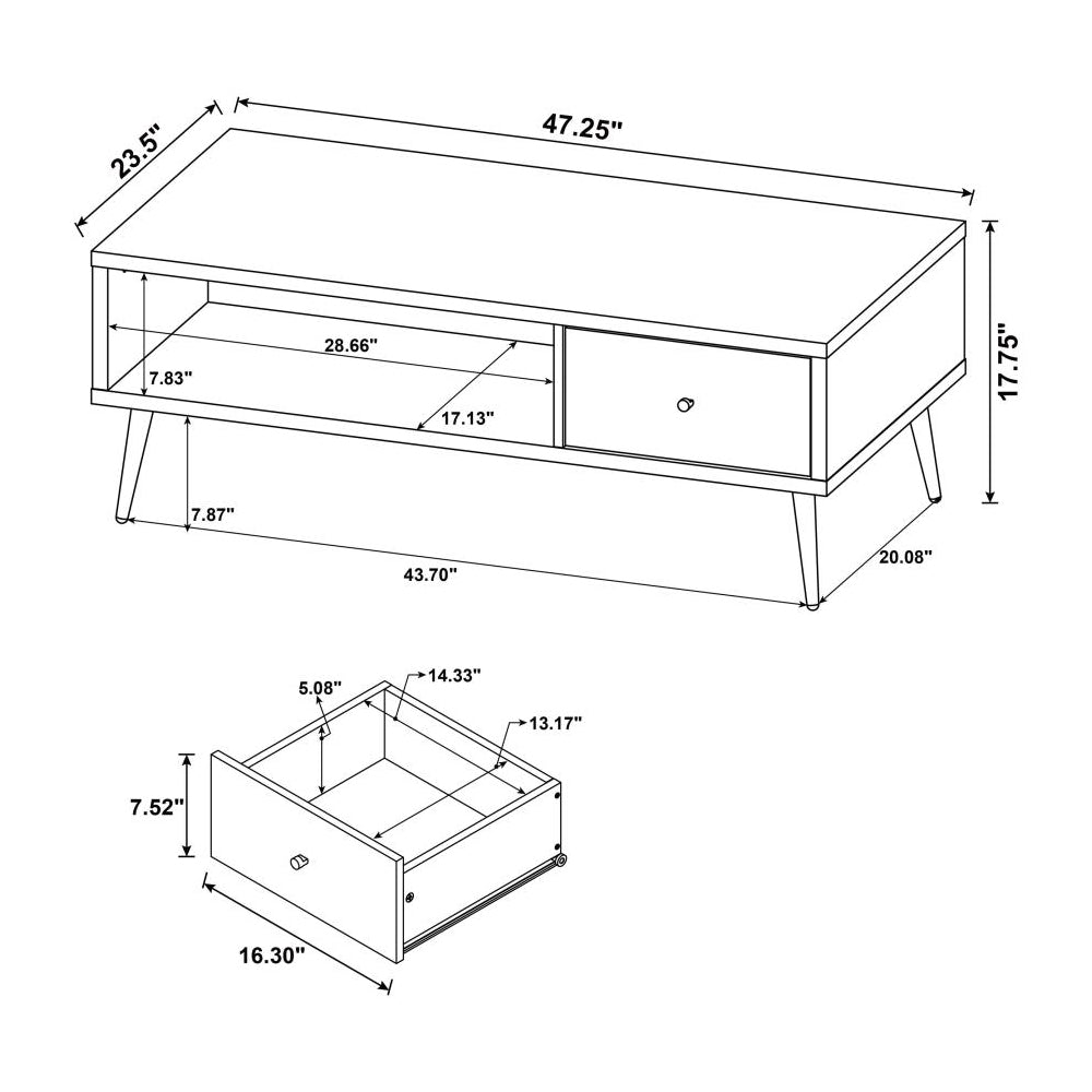 - Storage: One deep drawer with a dark gray front for concealed storage plus a wide open compartment ideal for magazines, books, and remote controls.