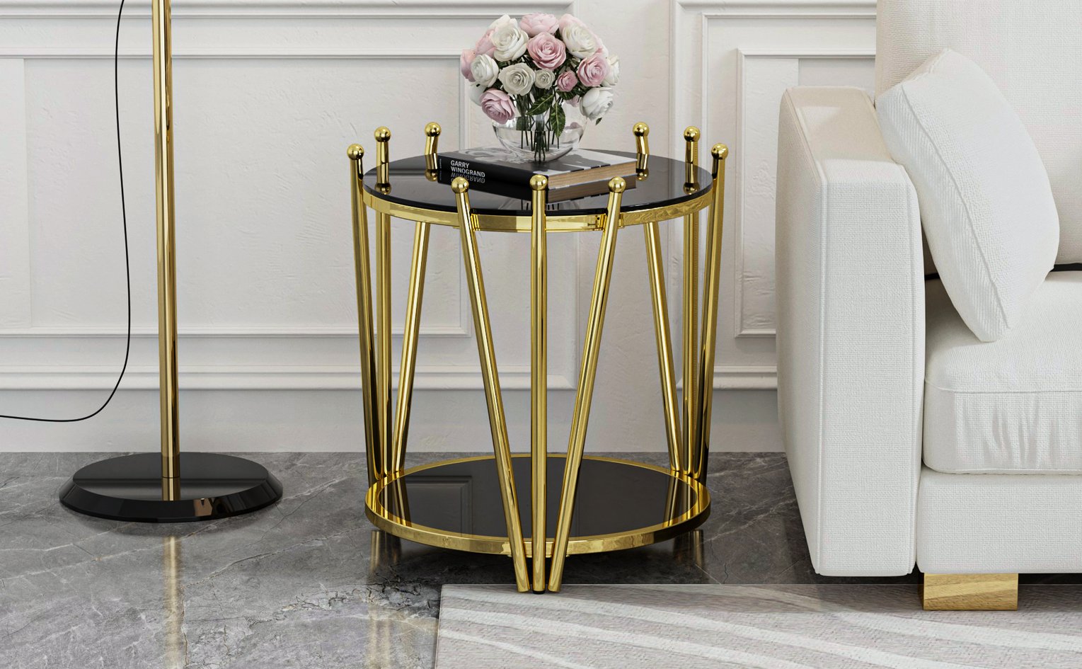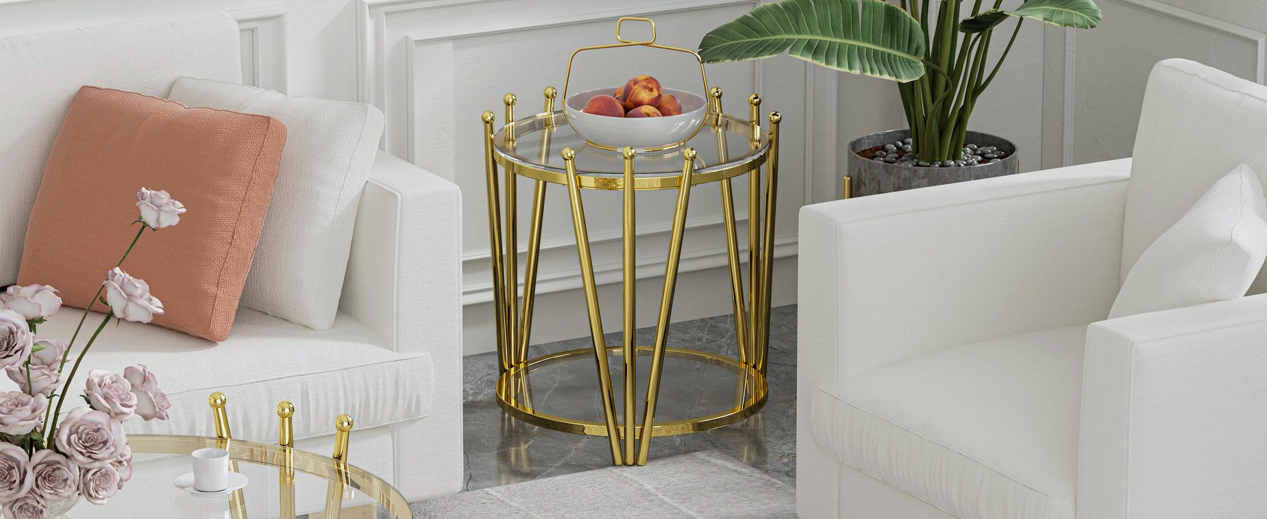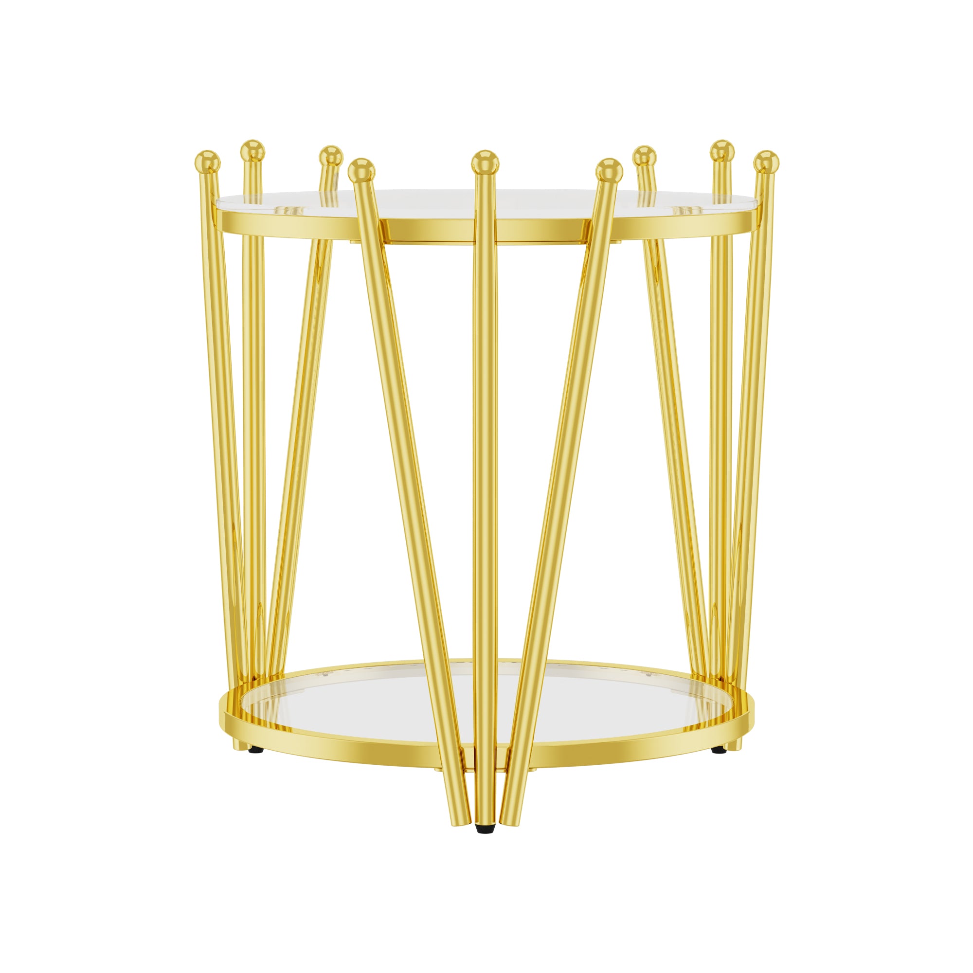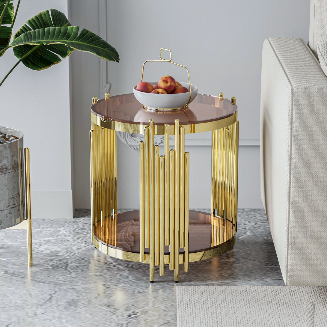 Introduce a touch of modern luxury to your living space with this elegant round side table. Combining a polished gold stainless steel frame with clear tempered glass, its crown-inspired design elevates décor while offering practical storage and durable construction ideal for living rooms, lounges, or beside a sofa.