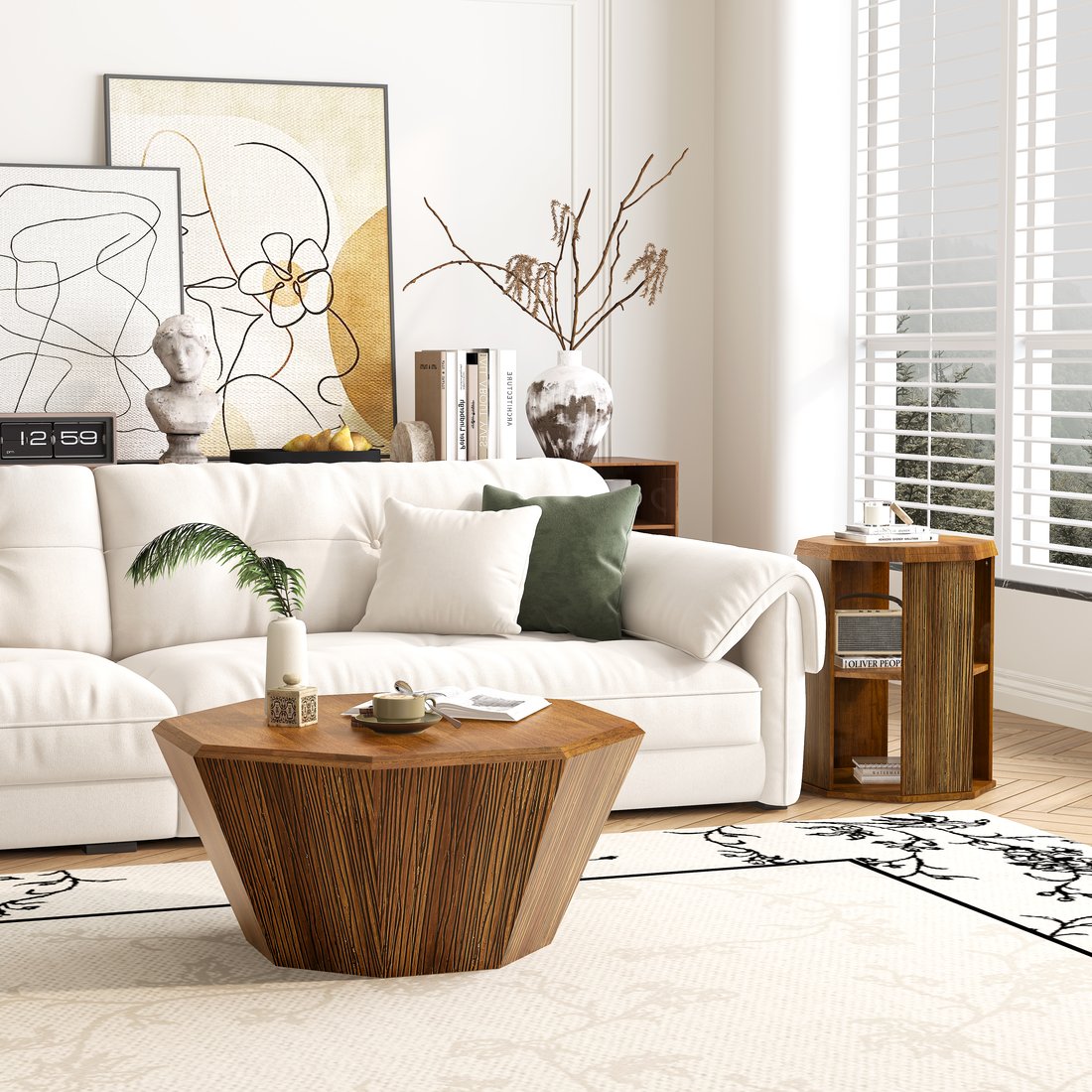 - 1、Stylish & Versatile Design: This two-piece octagonal coffee table set seamlessly blends modern elegance with classic charm. Perfect for any living space, it serves as both a coffee table and stylish side tables, adapting effortlessly to your decor needs.
