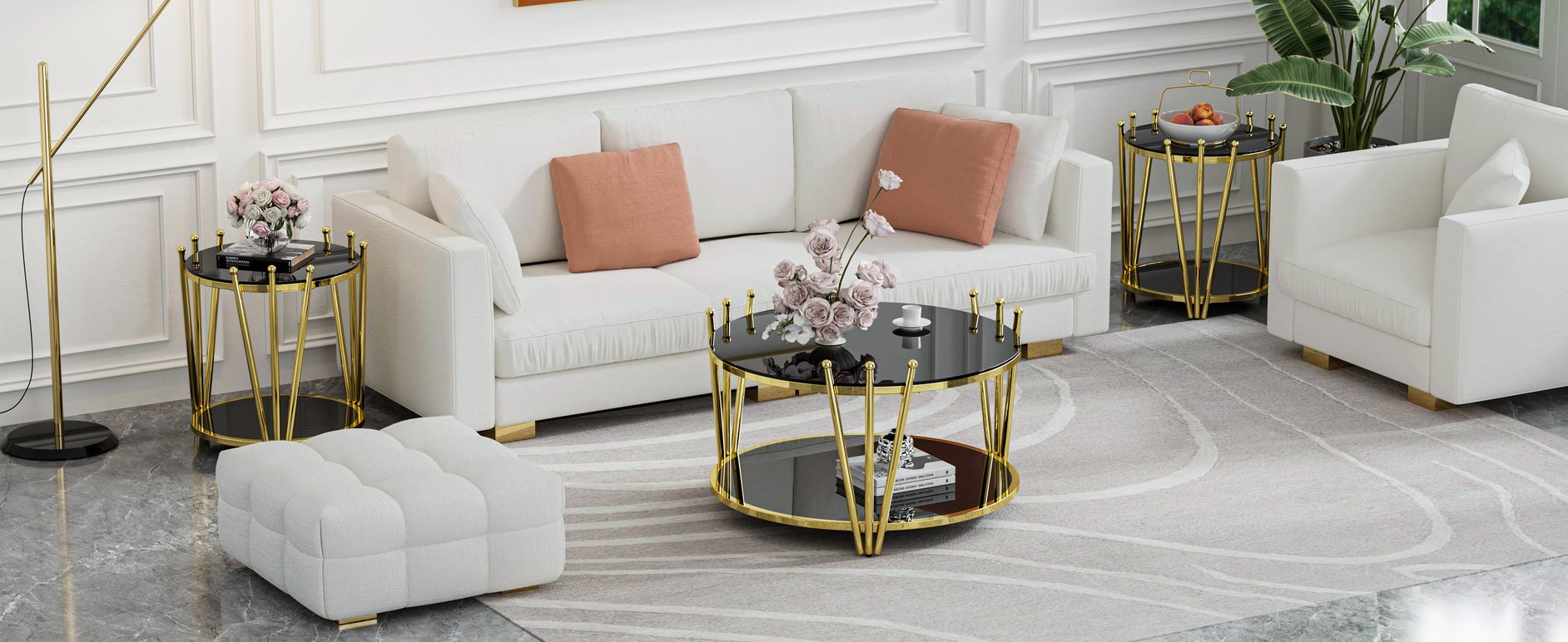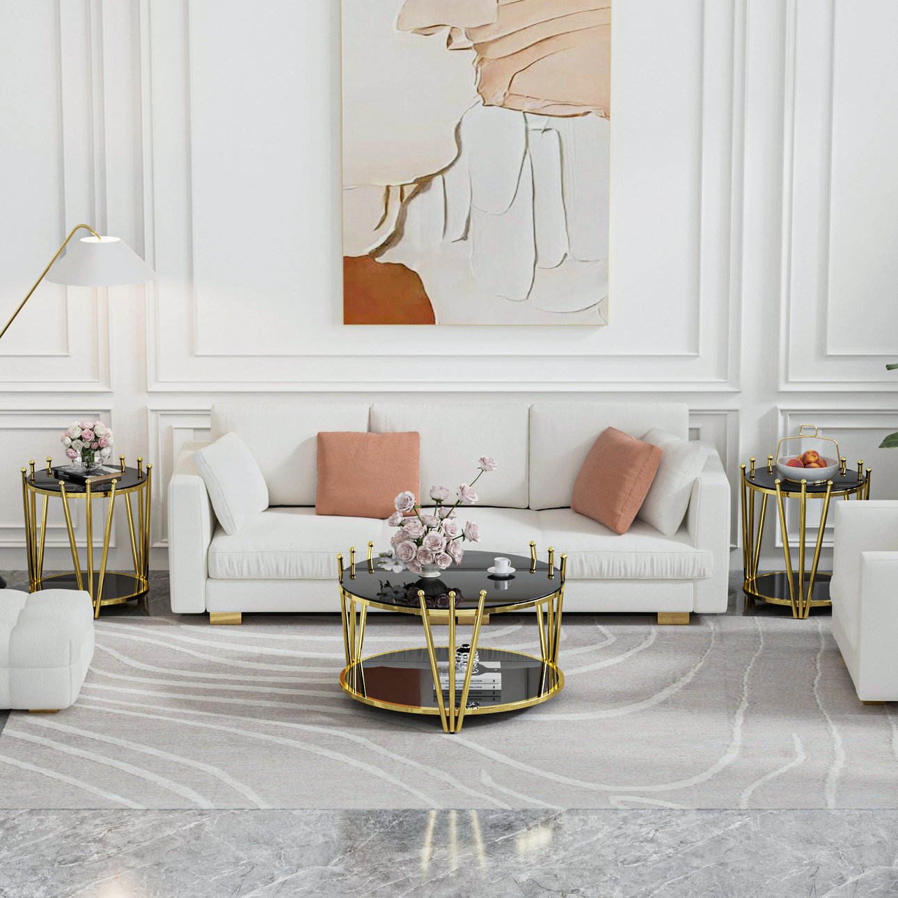 - 3.Gold Stainless Steel Frame - Round living room table made of high quality stainless steel material instead of normal iron, that have been polished many times and are bright and sturdy. Strong load 300lbs.