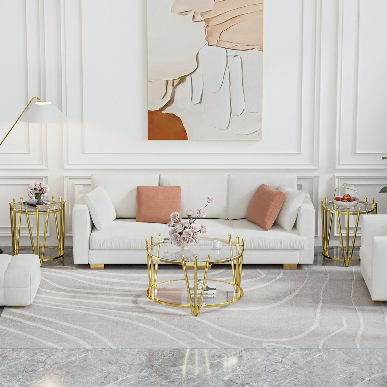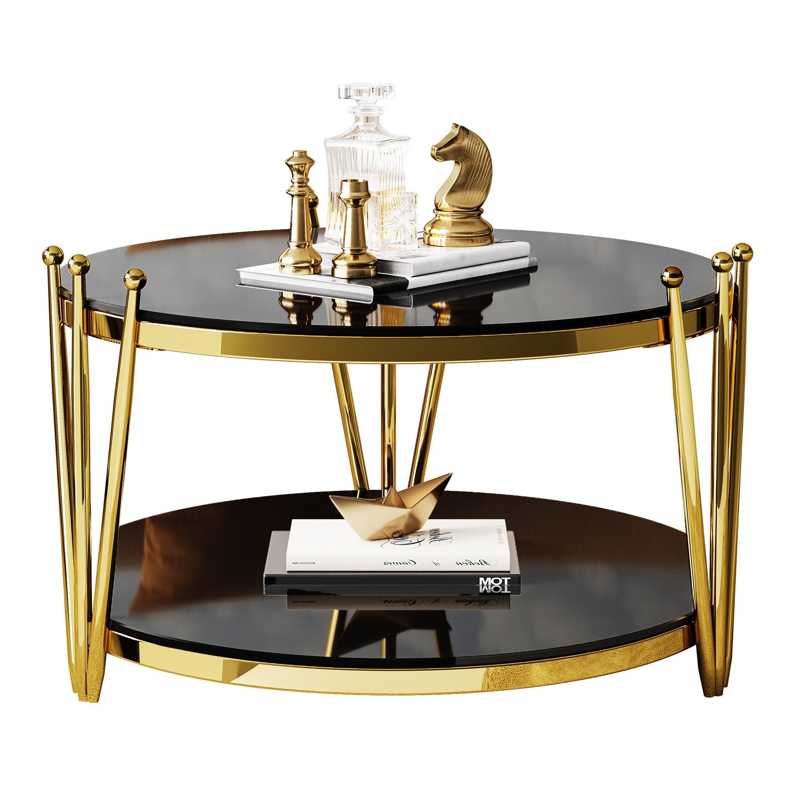 Elevate your living room with a modern, luxury coffee table that combines sculptural metalwork and crystal-clear tempered glass for a refined centerpiece. Designed to be both striking and practical, this round two-tier table adds visual lightness while offering organized storage and durable performance for everyday use.