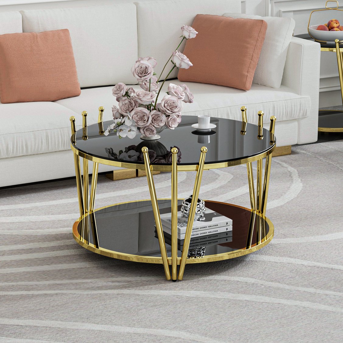 - 1.Luxury & Modern Design - The gold color and unique crown-shaped frame give this round coffee table a luxurious and elegant look, perfect for adding a touch of opulence to living room.