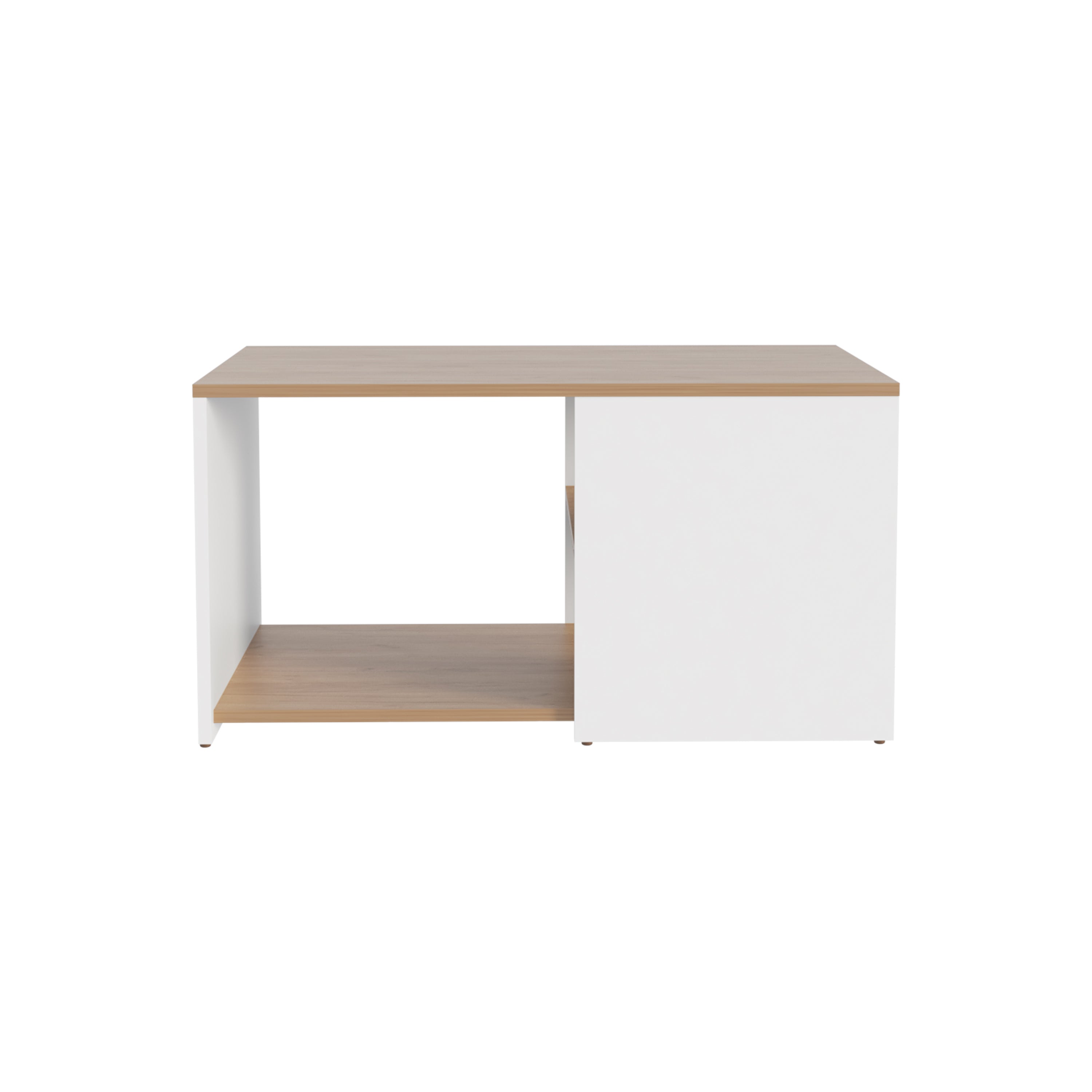 Bring modern style and practical storage to your living room with this compact, multi-tone coffee table. Its clean white and natural oak finish pairs well with contemporary or transitional decor, while three open shelves keep books, remotes, and décor organized and within reach. Durable particle board construction delivers everyday reliability, and the straightforward assembly means it’s ready for use quickly.