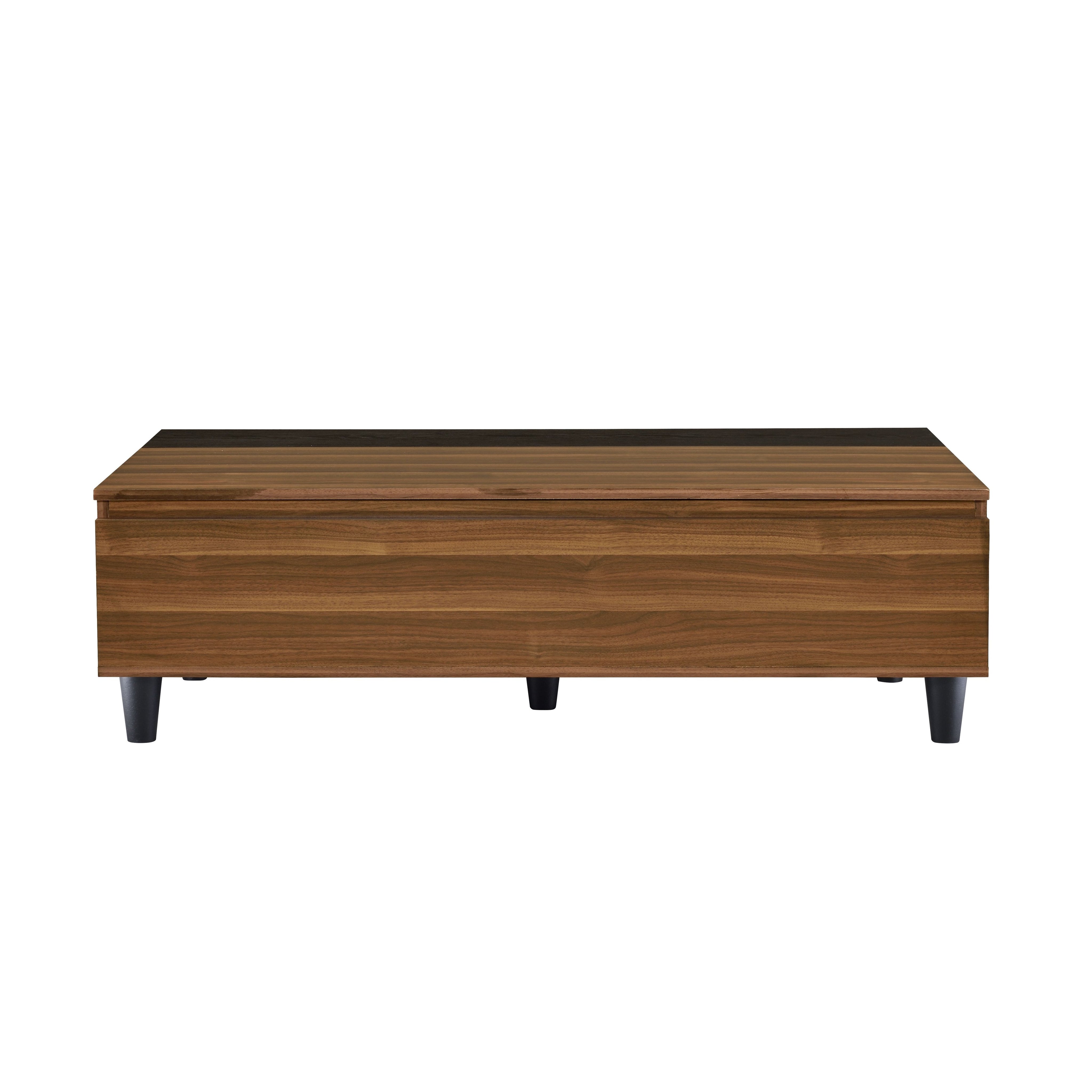 Avala brings together mid-century charm and modern practicality in a walnut and black coffee table with a convenient lift-top that transforms your living room into a more functional, organized space. Thoughtfully designed for everyday use, this piece offers concealed storage, open shelving for quick access, and a durable melamine-finished top that resists wear and is simple to maintain.