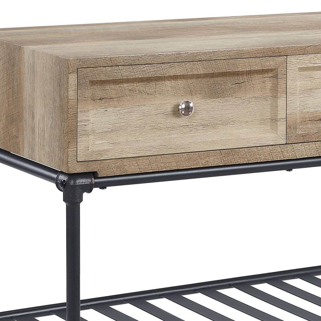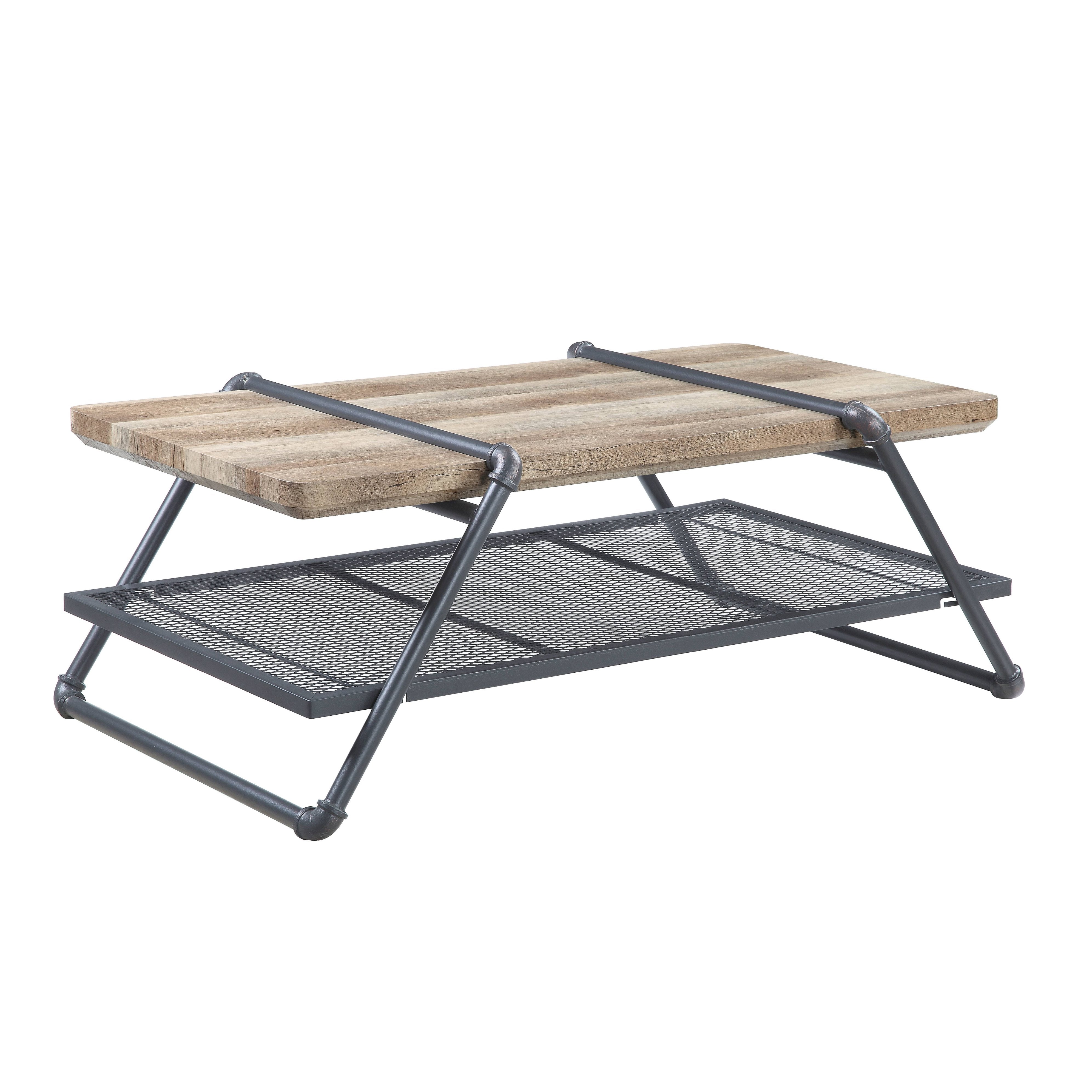 Bring rustic warmth and industrial character to your living space with this versatile coffee table. Its oak and sandy gray finish highlights a natural wood grain aesthetic while the metal water-pipe style frame adds vintage-inspired strength and visual interest—ideal for contemporary, farmhouse, or loft-style interiors.