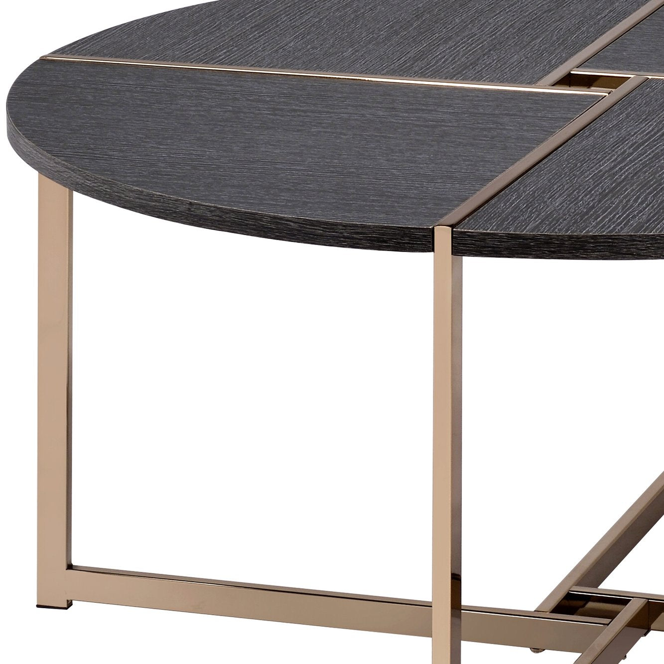 Bring contemporary elegance to your living space with this striking round coffee table, finished in contrasting black and champagne tones. Designed to be both visually appealing and structurally sound, its sleek round top and distinctive X-shaped metal base create a modern focal point while providing a stable surface for everyday use and display.