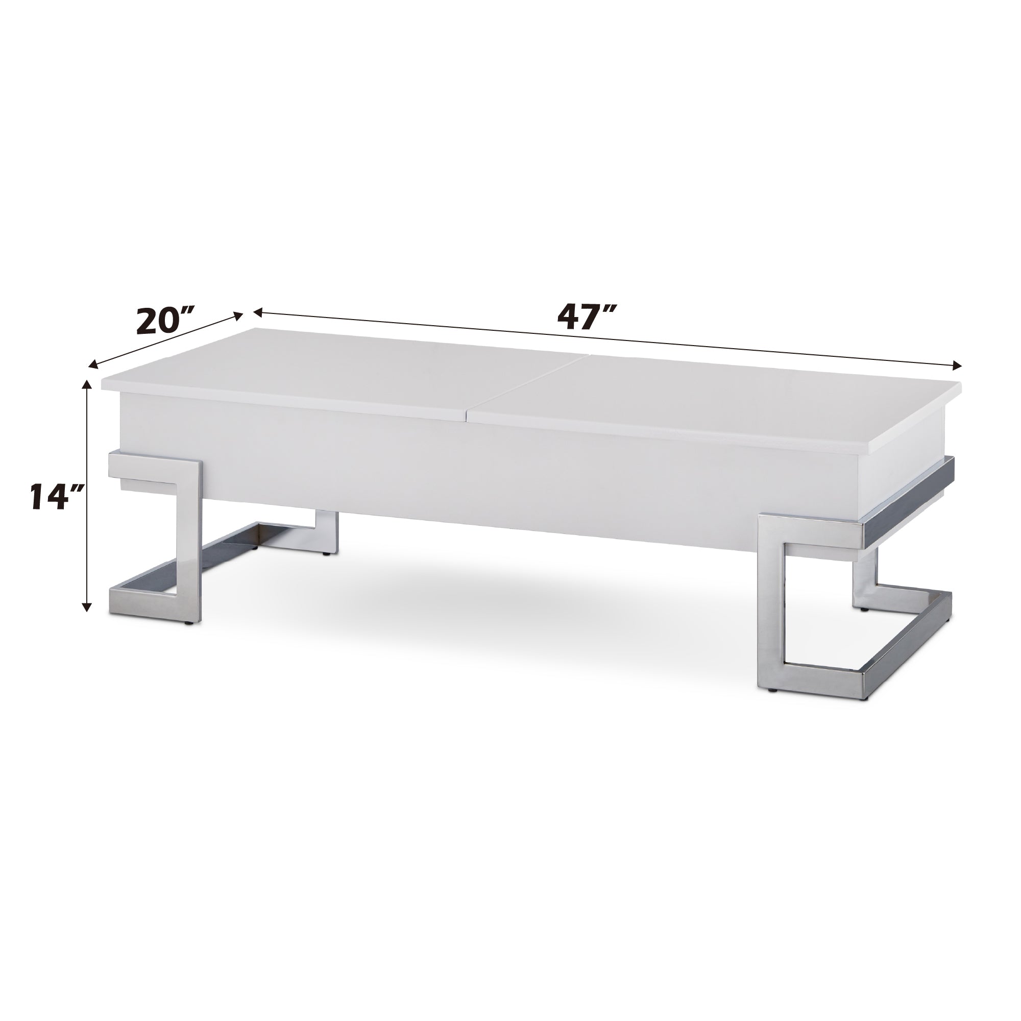 - This sleek and modern coffee table with a lift top is available in two striking color combinations: White High Gloss & Chrome and Black High Gloss & Chrome, making it a versatile addition to any contemporary living space.