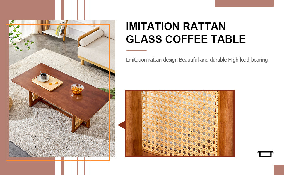 - imitation rattan and solid wood coffee table, rectangular solid wood coffee table, small living room coffee table