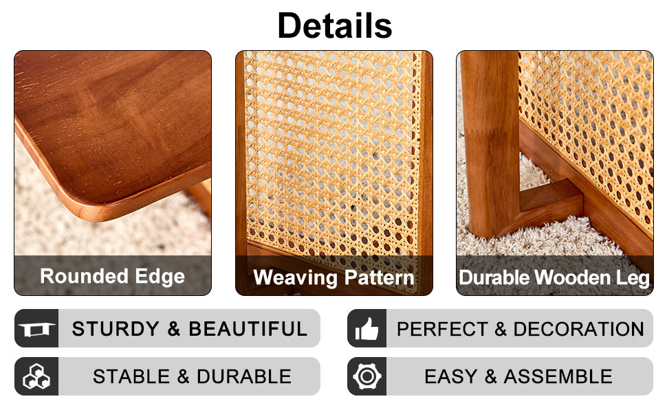 - Color & Finish: Walnut finish with a subtle faux-rattan surface that evokes handcrafted log-wind character while remaining easy to maintain.