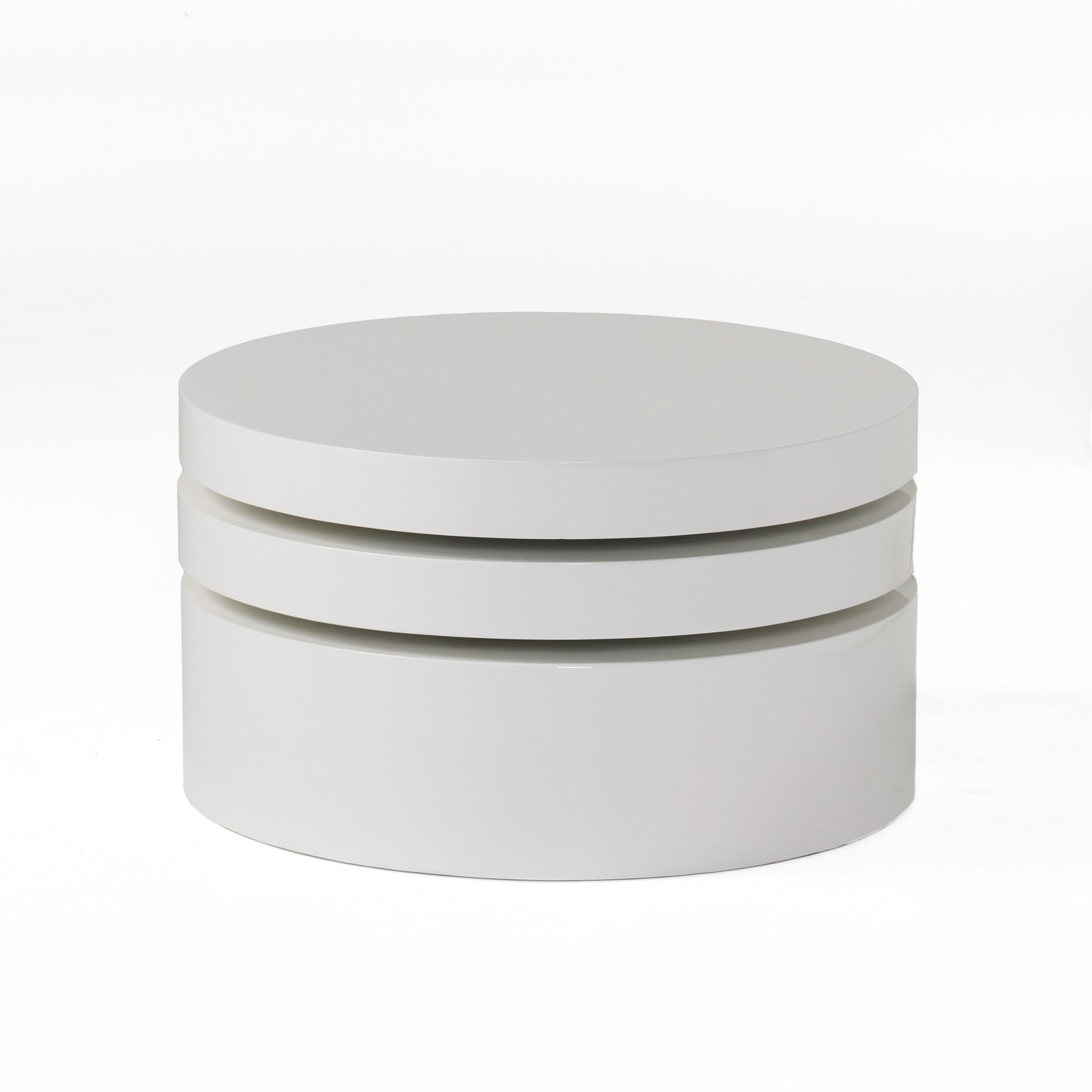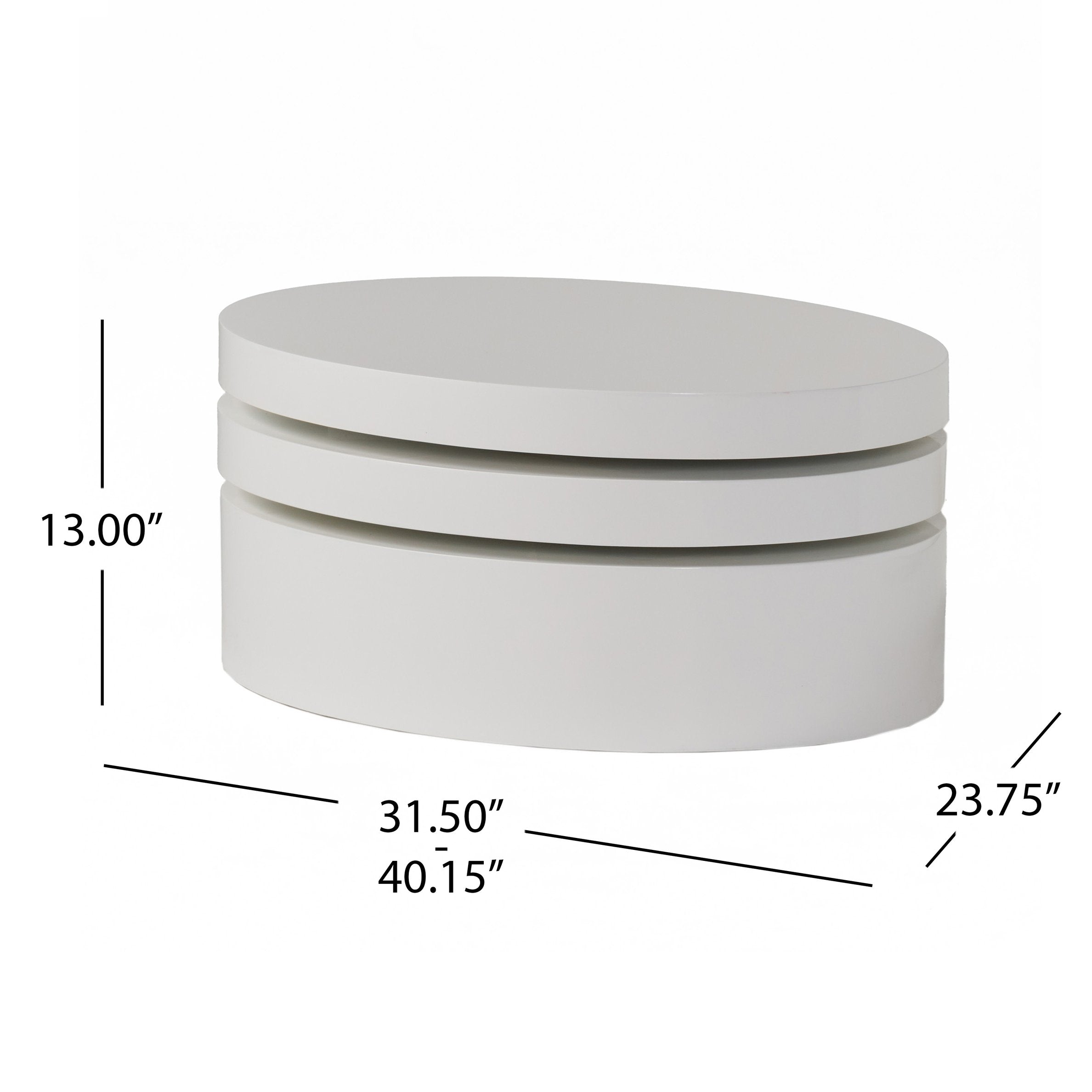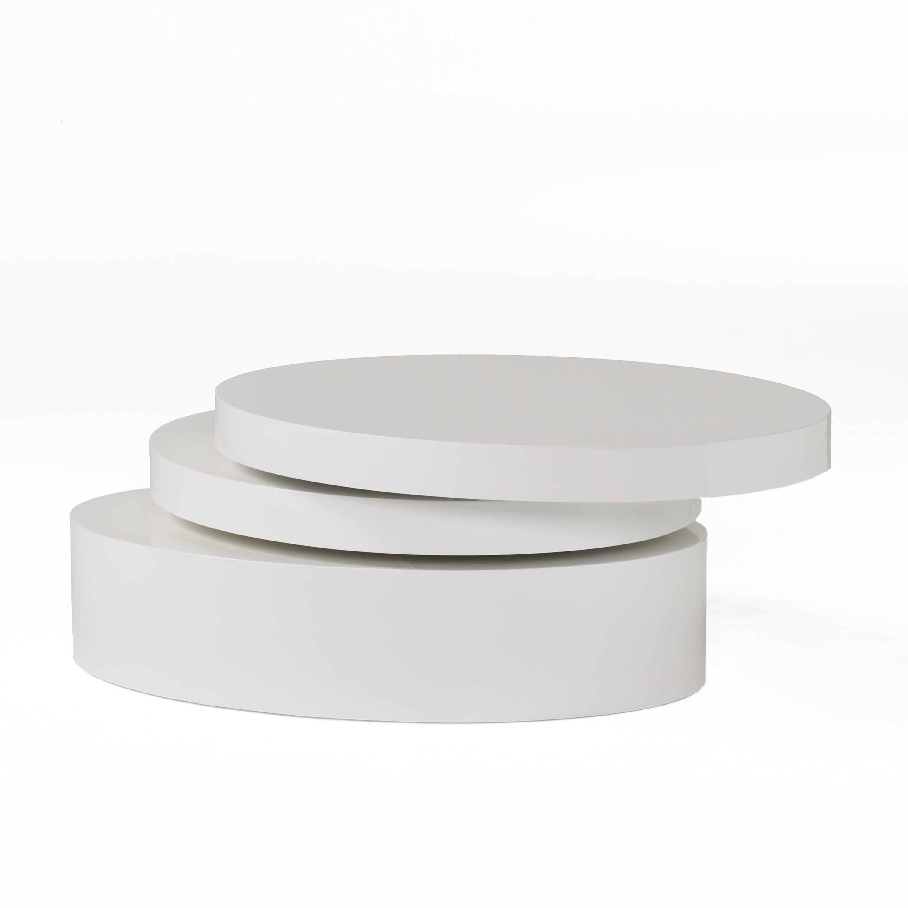 Add a sleek, functional centerpiece to your living space with this contemporary oval coffee table. Its low-profile silhouette and high-gloss white finish create a bright, modern look, while the innovative rotating layers provide flexible surface options for entertaining, display, or everyday use.