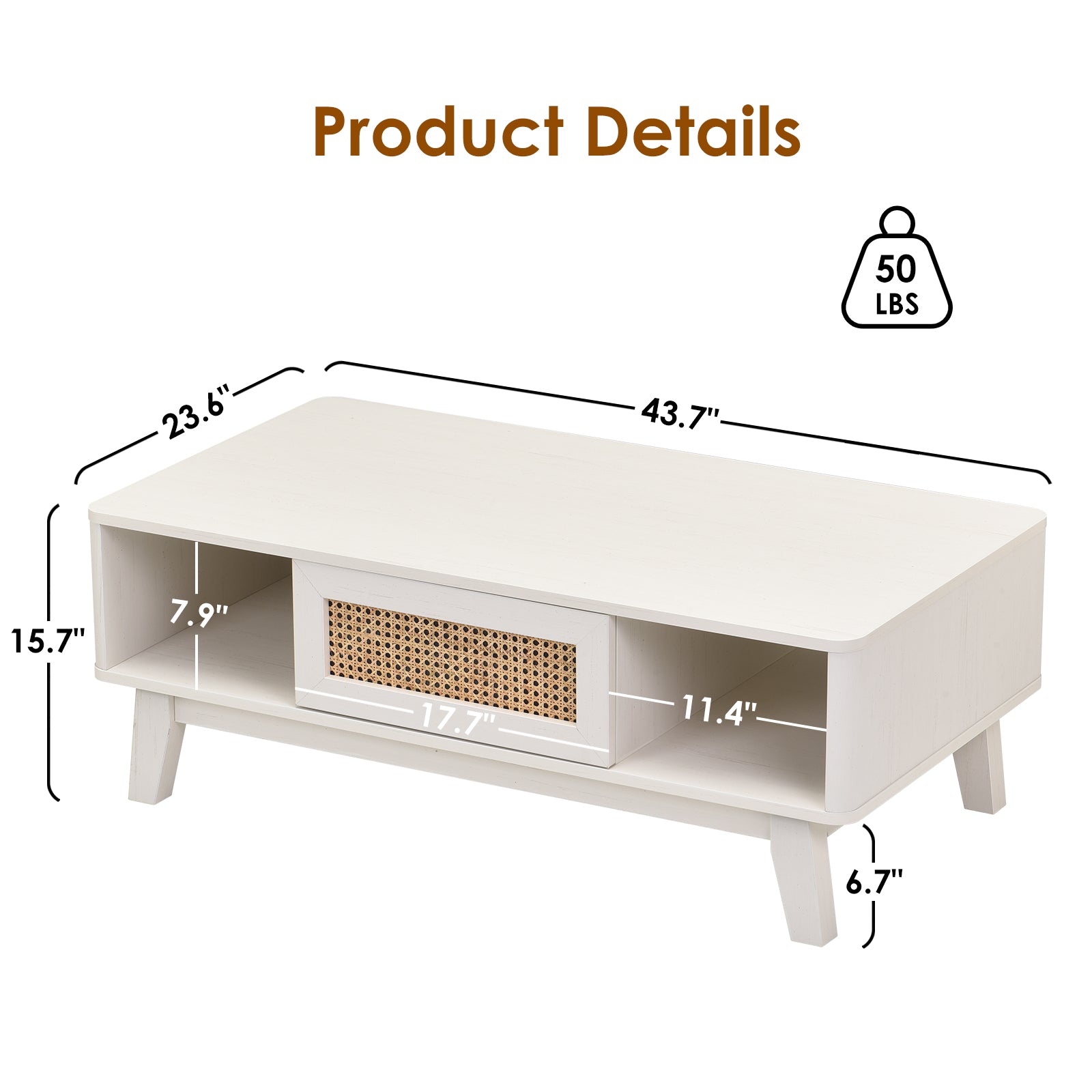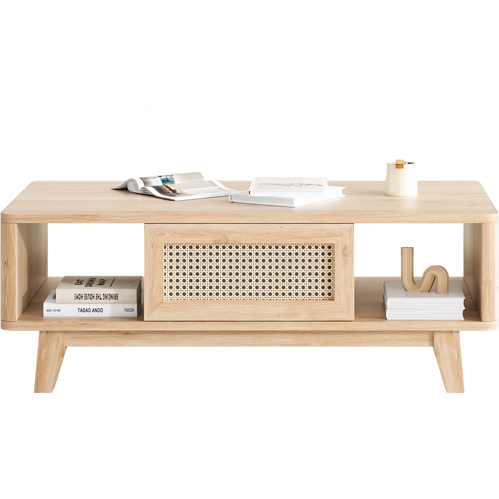 Elevate your living space with a stylish mid-century modern coffee table that blends form and function. Designed with durable materials and thoughtful storage, this rectangular table features a rattan-front drawer and solid wood legs for a warm, timeless look that fits both contemporary and farmhouse interiors.
