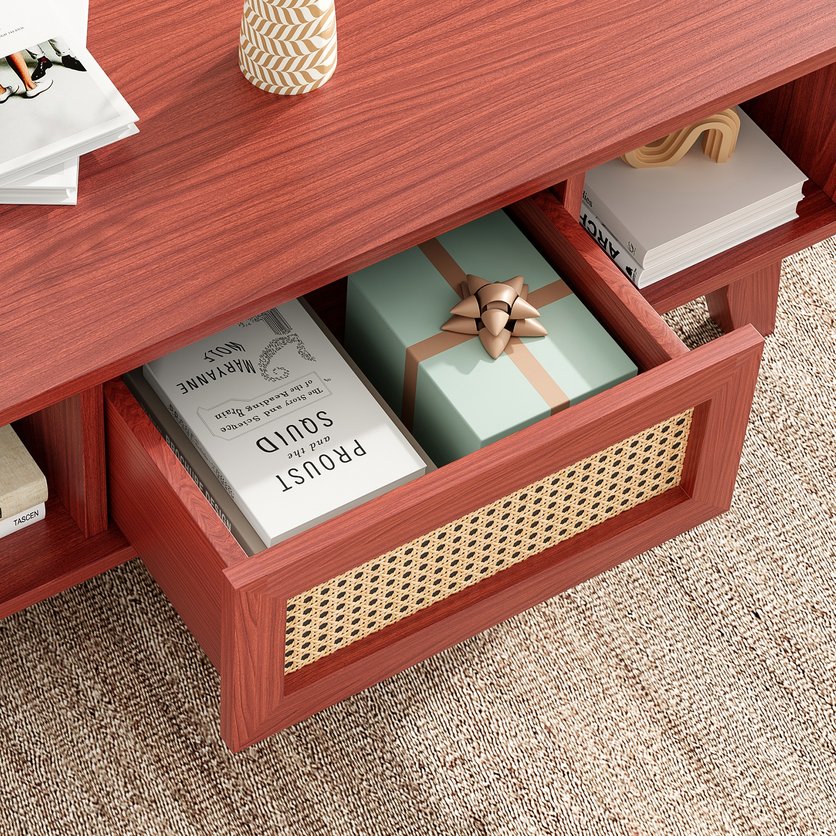 - Sophisticated Design: Featuring a wood-textured finish and rattan drawer, our large coffee table exudes elegance. This stunning piece adds a touch of refinement to your living space, creating a harmonious and organized ambiance in your living room.