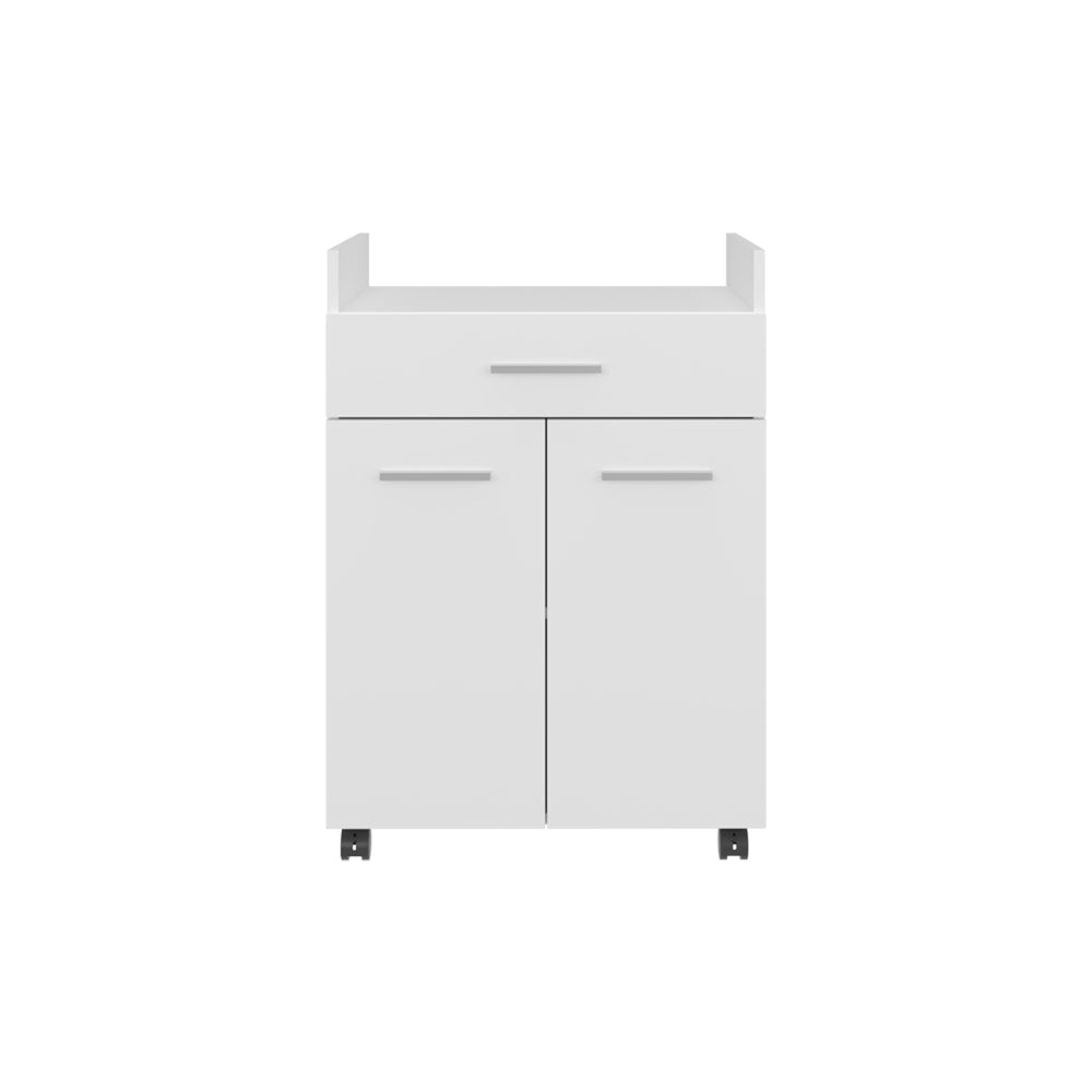 Bring order and style to your living room, kitchen, or office with this versatile white coffee cart. Clean lines and a modern engineered wood finish make it a seamless fit for contemporary interiors, while the practical layout and casters keep your essentials organized and always within reach. Durable construction and thoughtful storage options ensure long-term use for everything from coffee gear to office supplies.