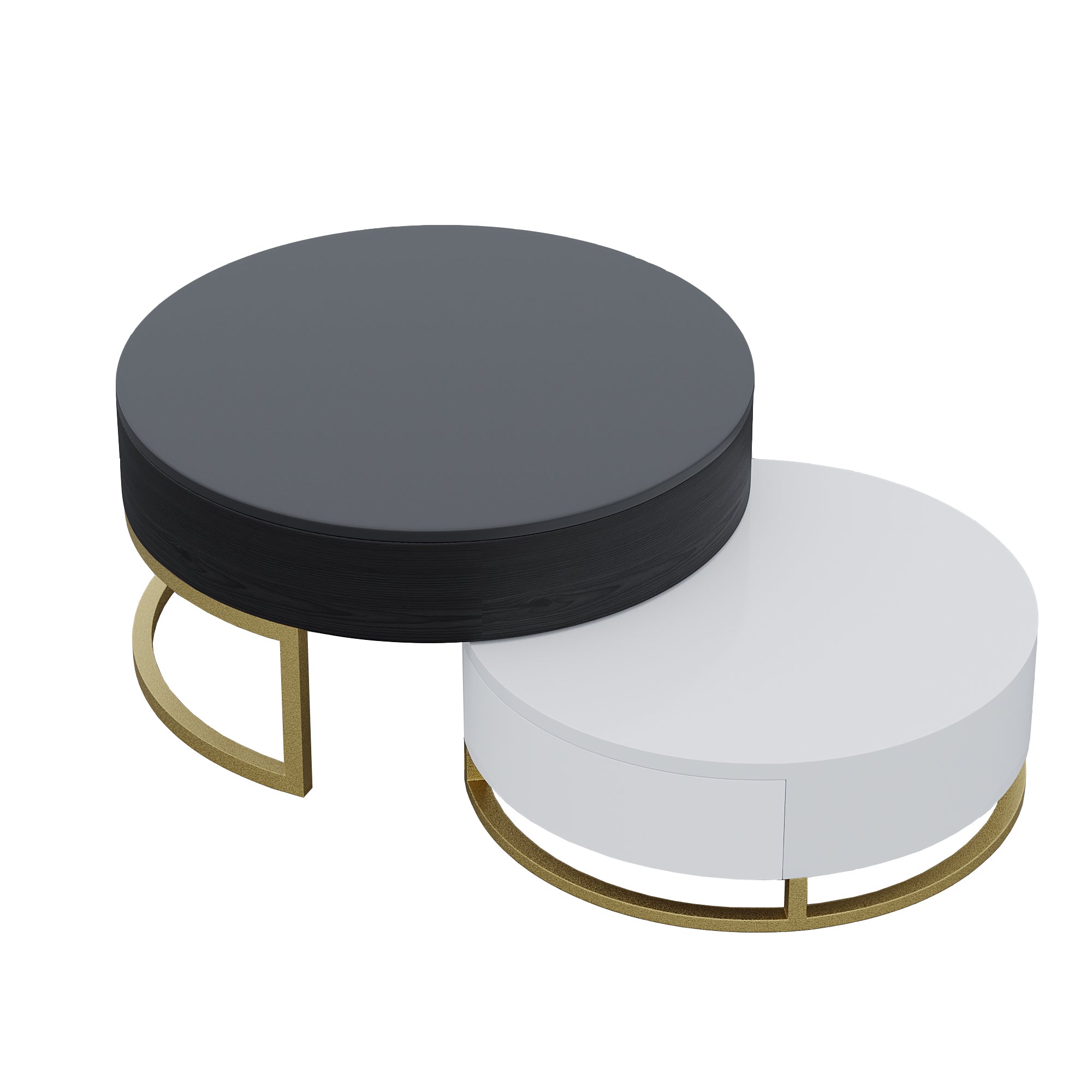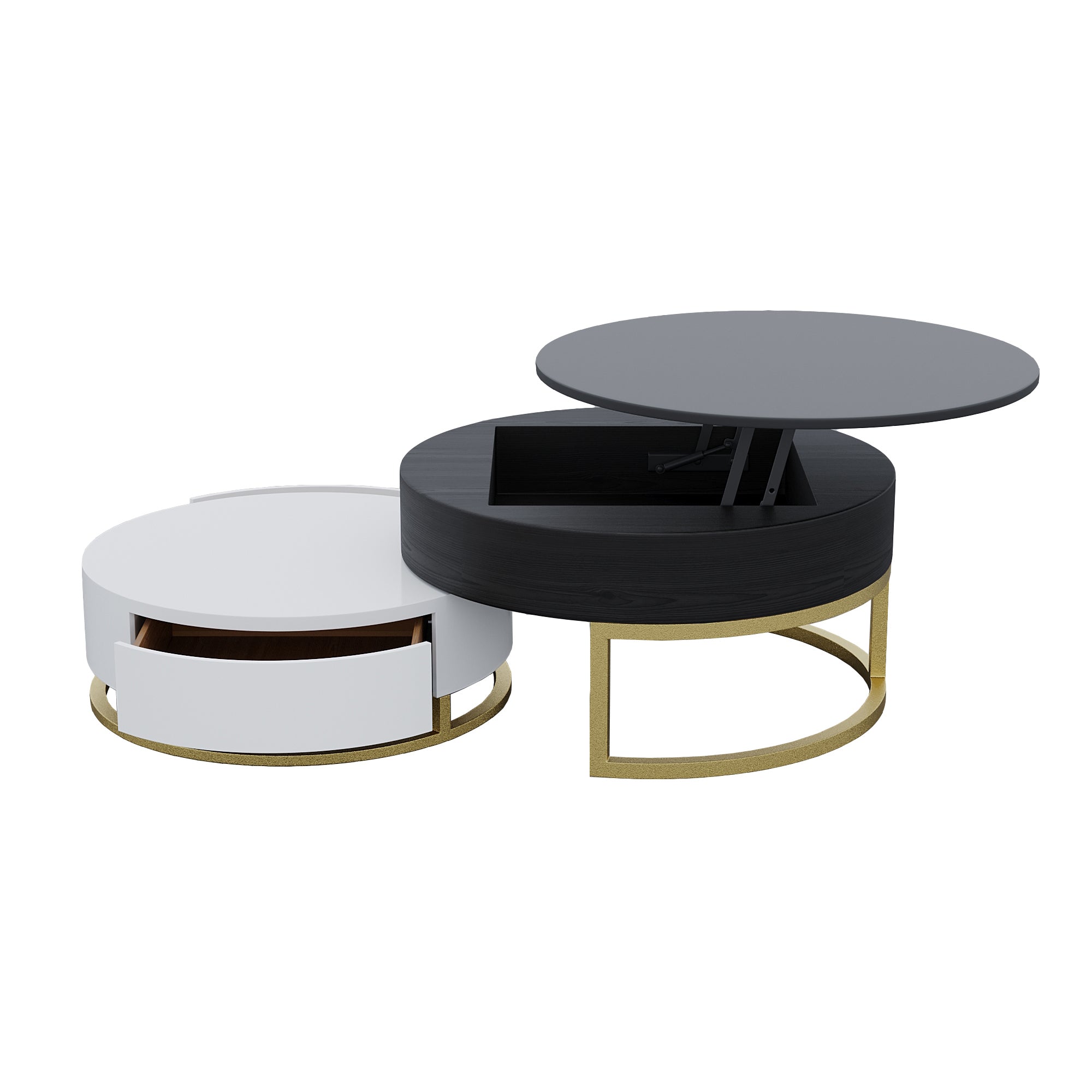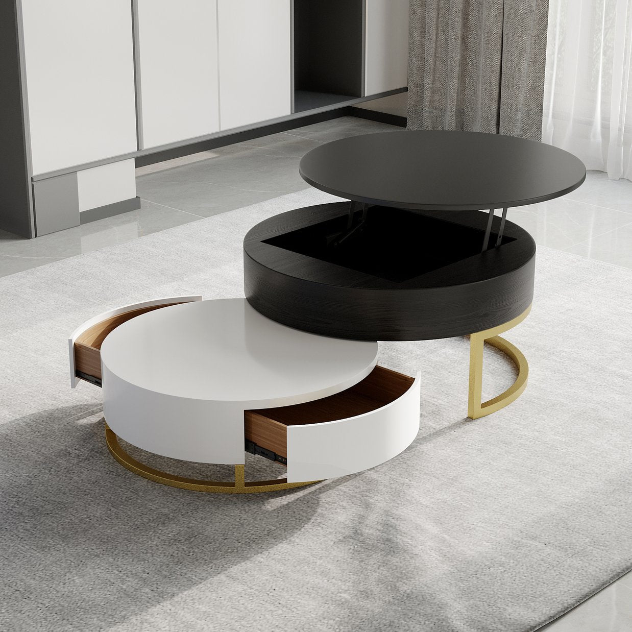 Enhance your living room with this modern, multifunctional round lift-top coffee table that blends sleek two-tone finishes and sturdy construction for everyday use. Its lift-top design provides convenient access for dining, working, or storage, while the contrasting white and black (or white and natural) finish adds visual interest to contemporary and transitional interiors.