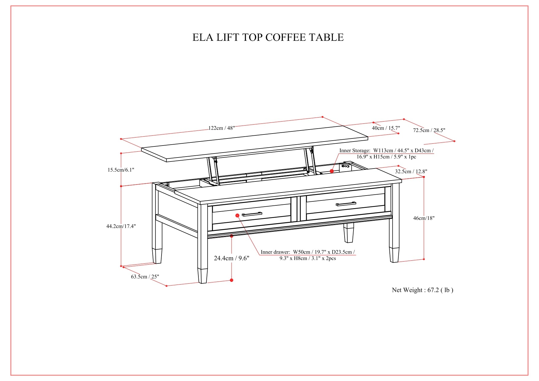 Elegant and versatile, this lift-top coffee table combines handcrafted solid wood construction with thoughtful storage and transitional design details to elevate your living space. Finished in a smoky brown stain with a protective NC lacquer, it showcases natural wood grain while offering durable, everyday functionality — perfect as a coffee or cocktail table in condos, family rooms, living rooms, or dens.