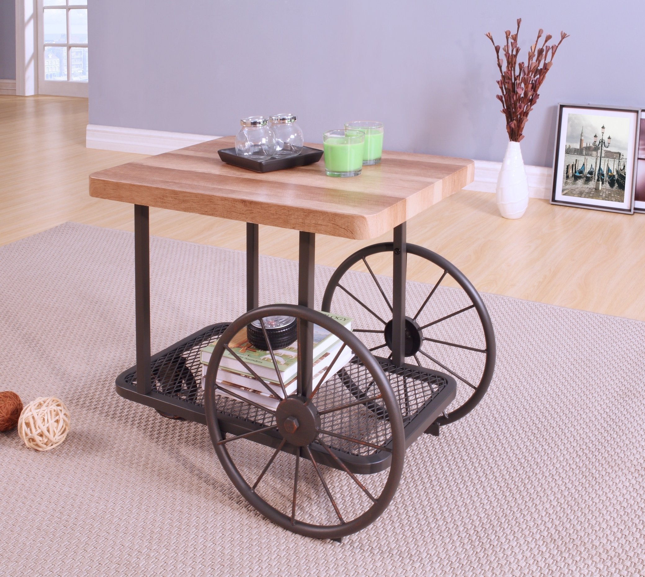 - Mobility & Style: Industrial-style metal wheels with hand-painted finish combine function and authentic character