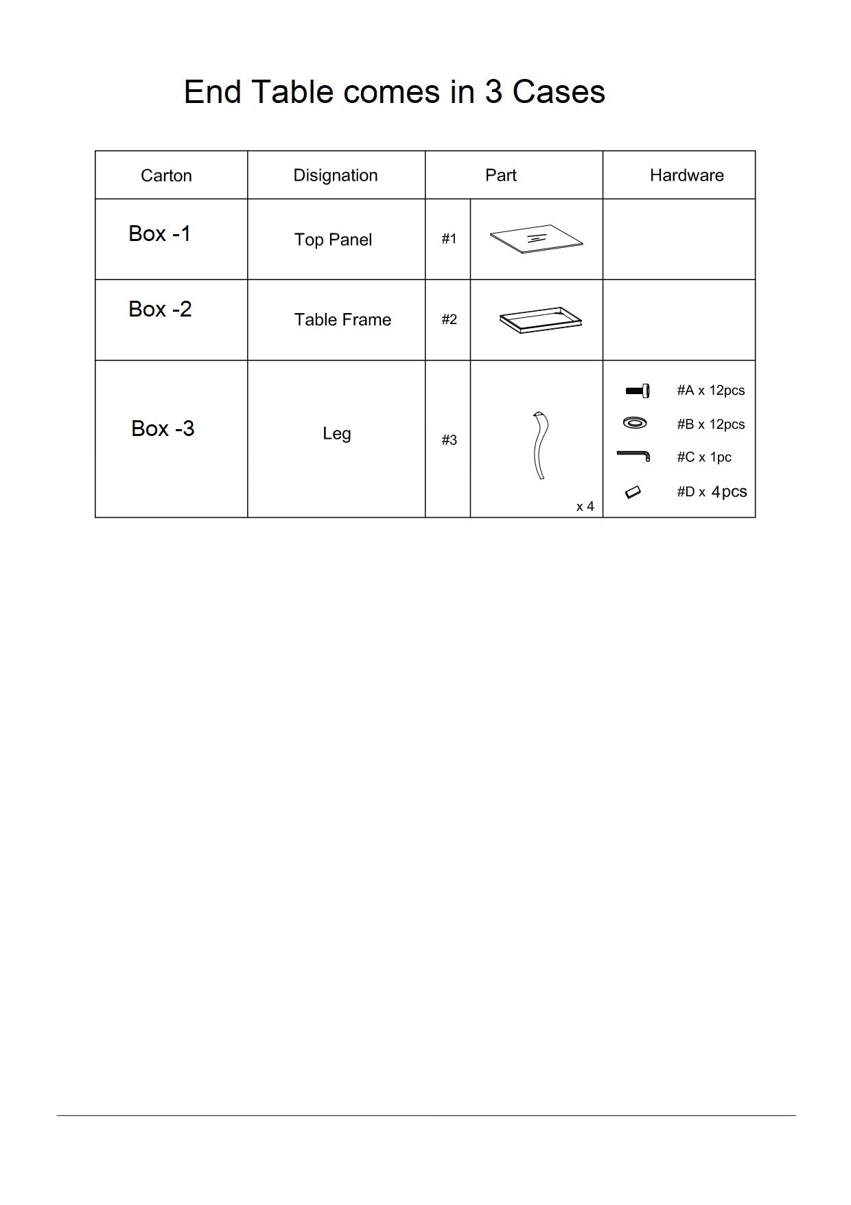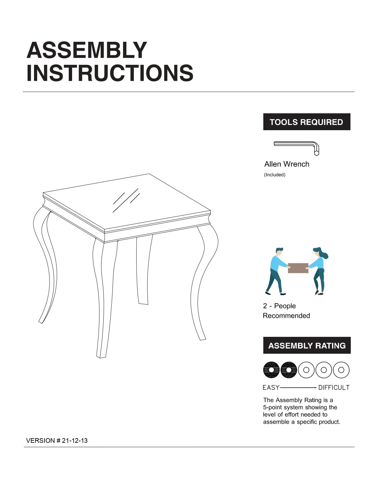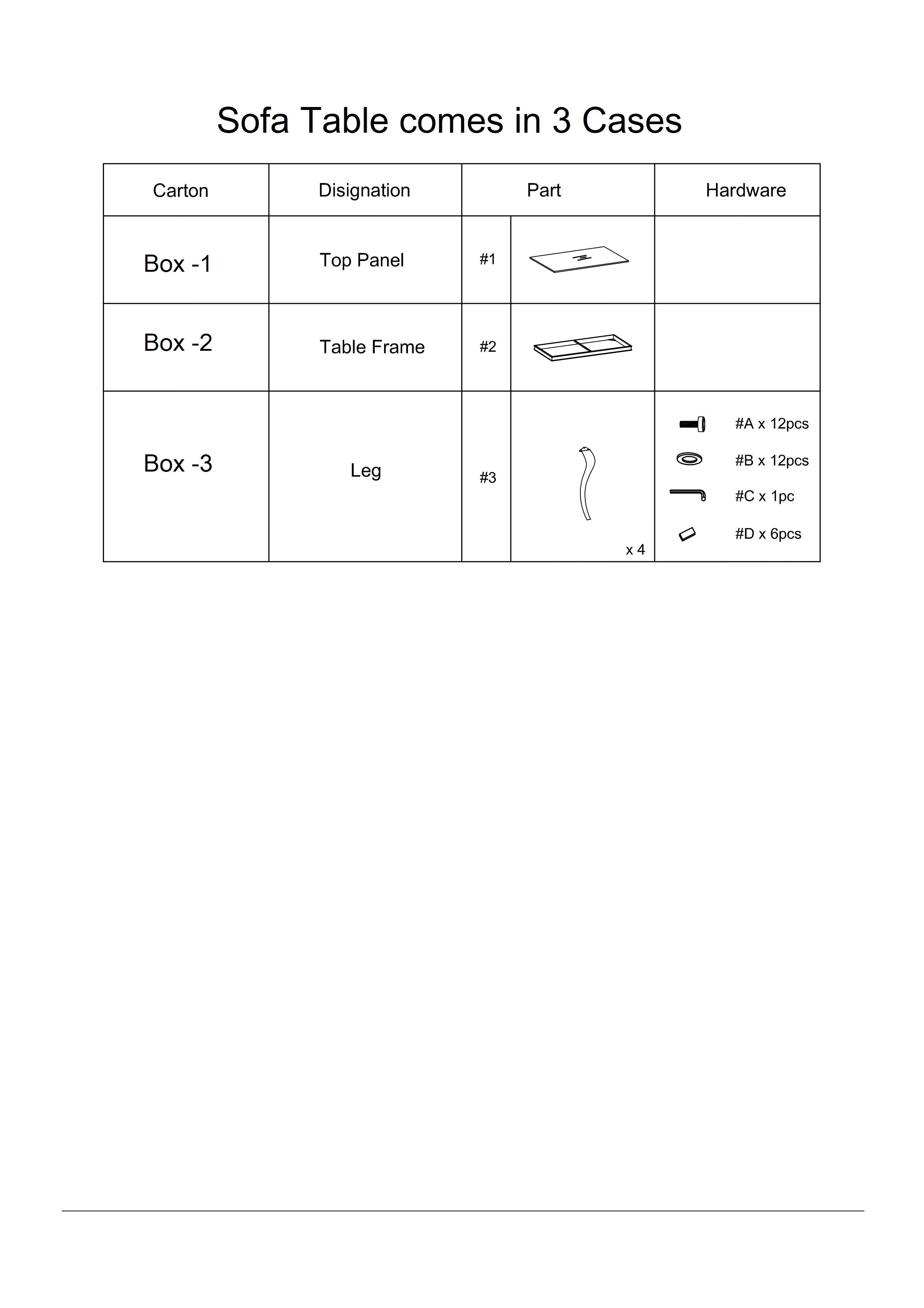 - Includes: One (1) coffee table. Simple assembly required—hardware and instructions included.