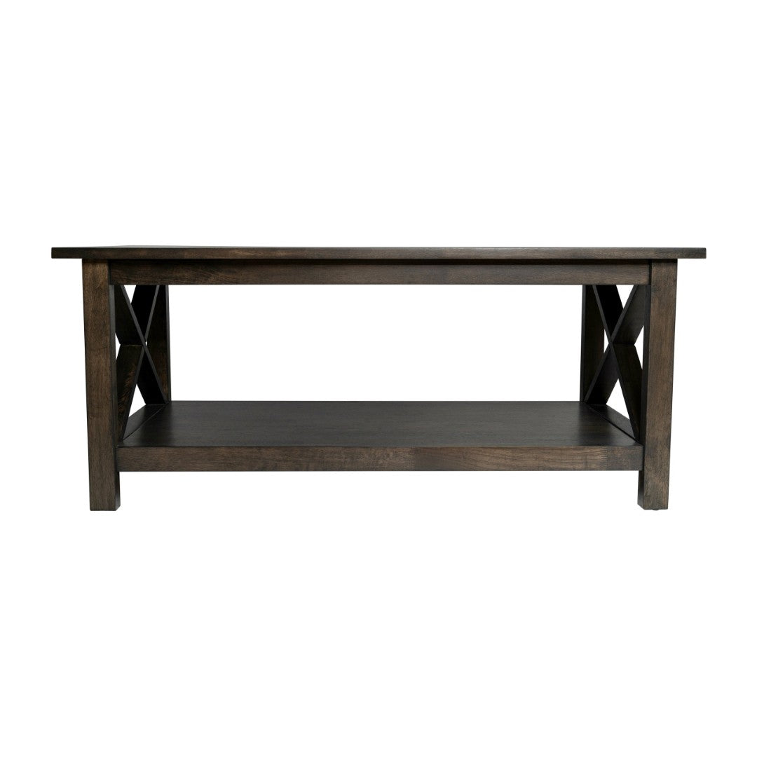 Dress up your living space with the Jasper farmhouse coffee table — a sturdy, stylish centerpiece that blends traditional X-frame charm with practical storage. Crafted from solid wood with a durable wood veneer finish, it offers generous surface area for entertaining or everyday use, a roomy lower shelf for organization, and thoughtful details like fixed floor glides to protect your floors. Easy to assemble and maintain, this table brings classic farmhouse character and reliable performance to your living room, den, or bedroom.