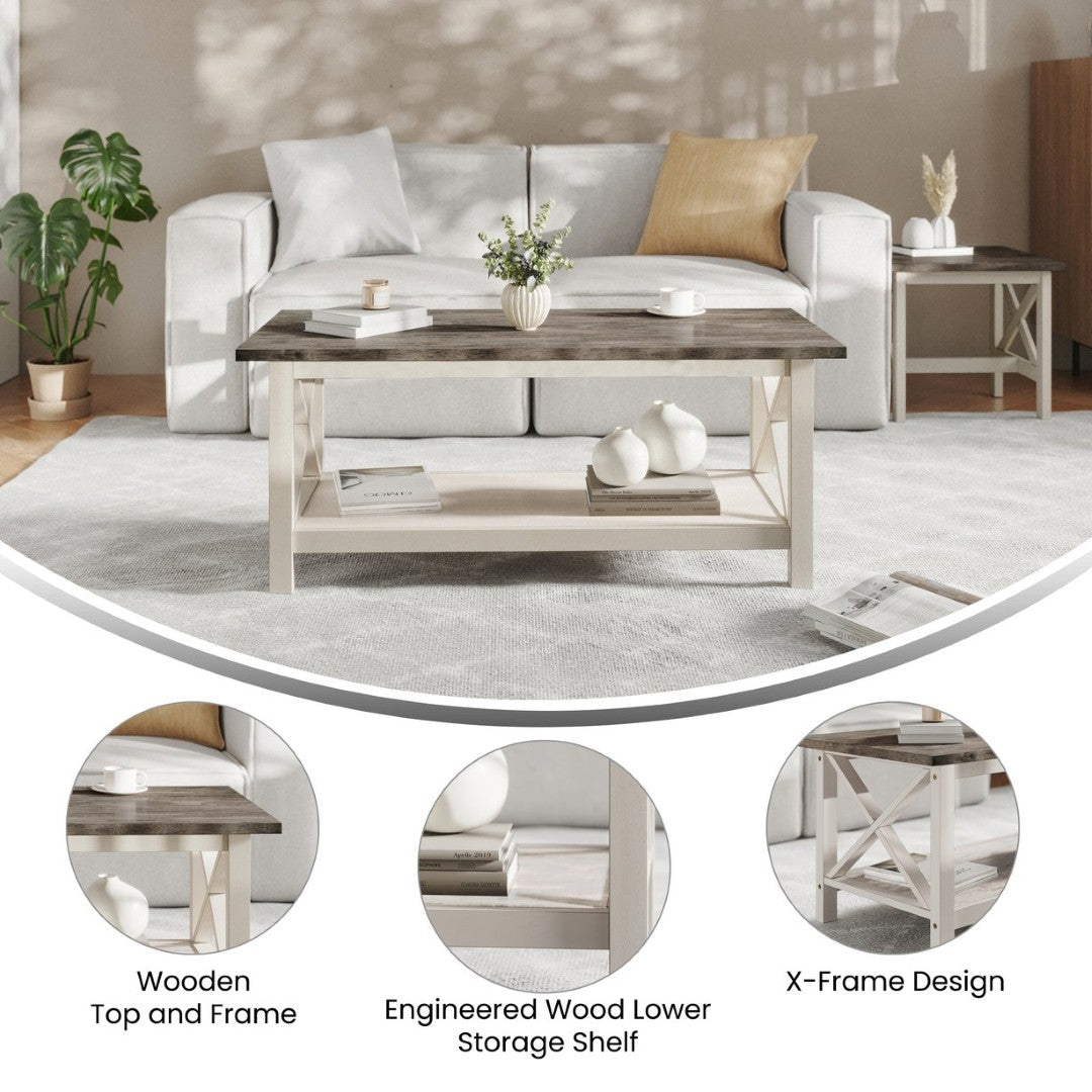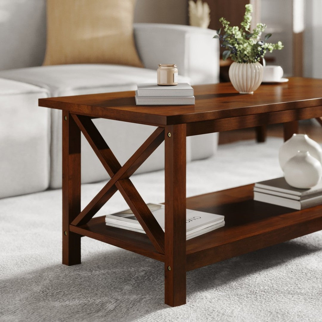 - Farmhouse Style Coffee Table with X-Frame Design