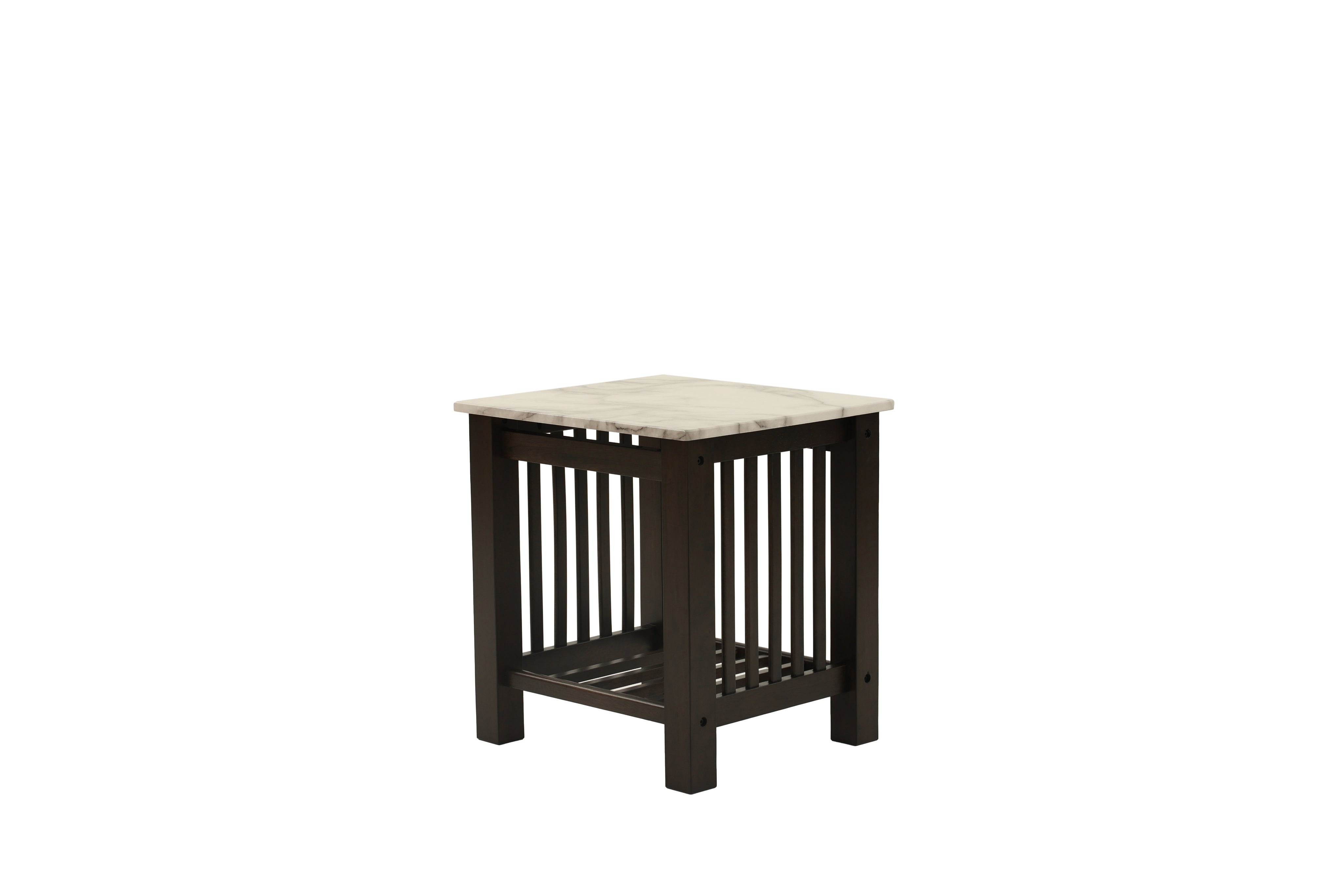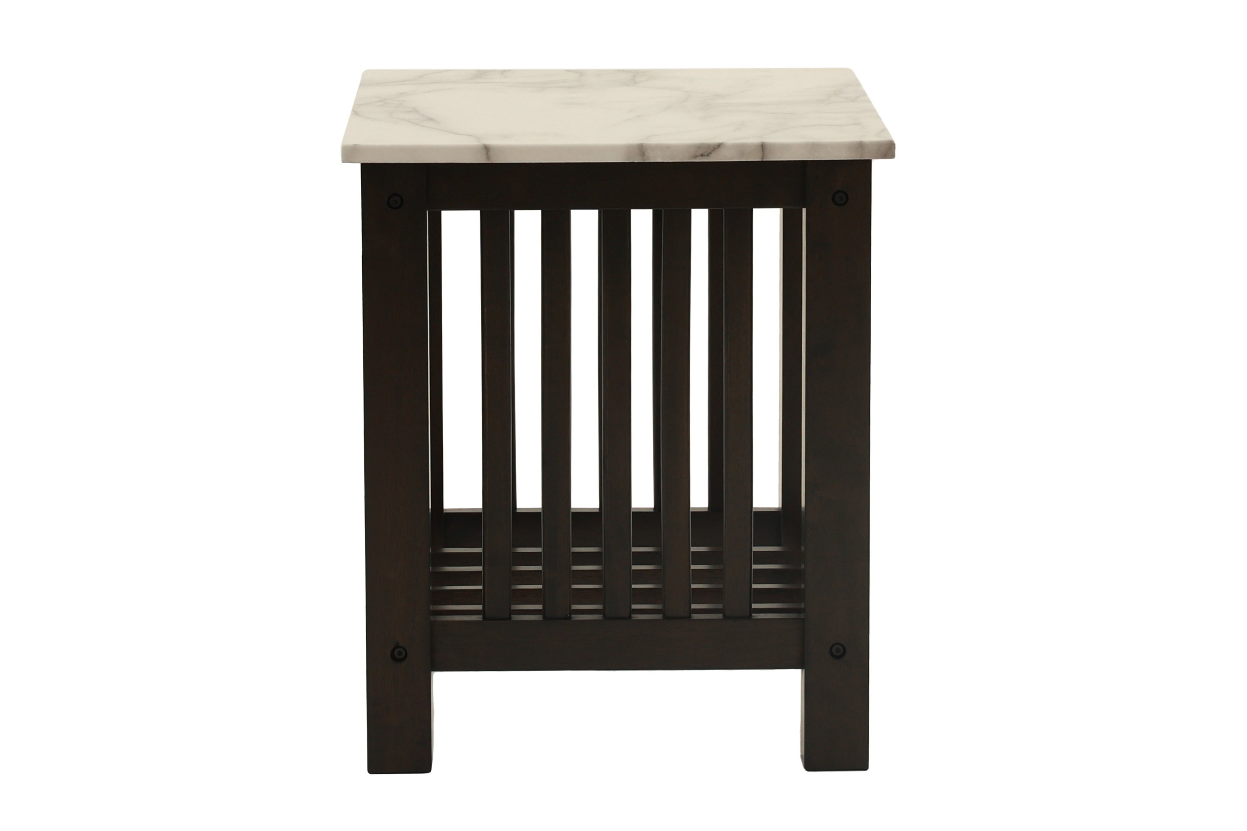 - Faux marble top offers a luxe, easy-care surface that resists scratches and stains while mimicking genuine stone