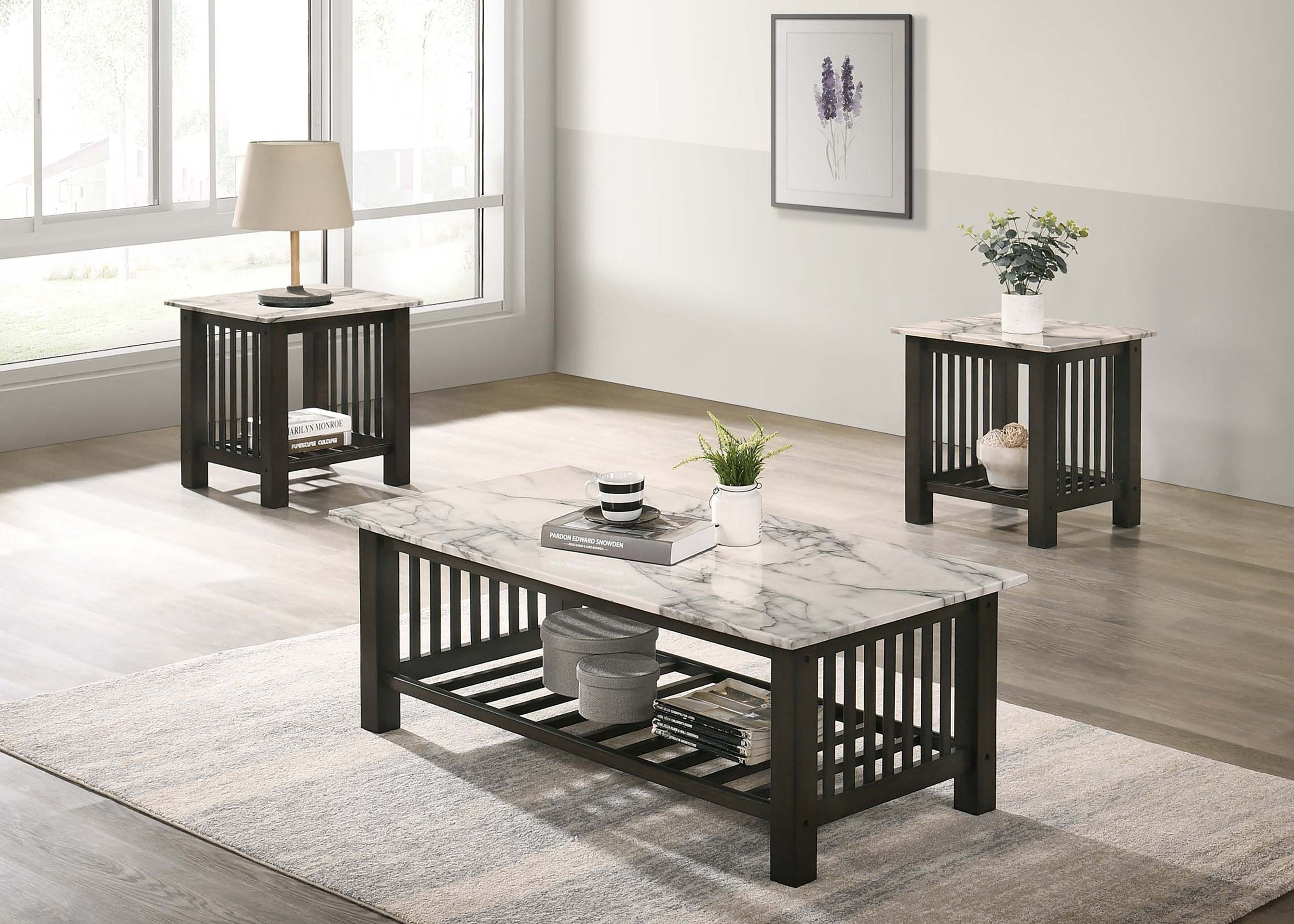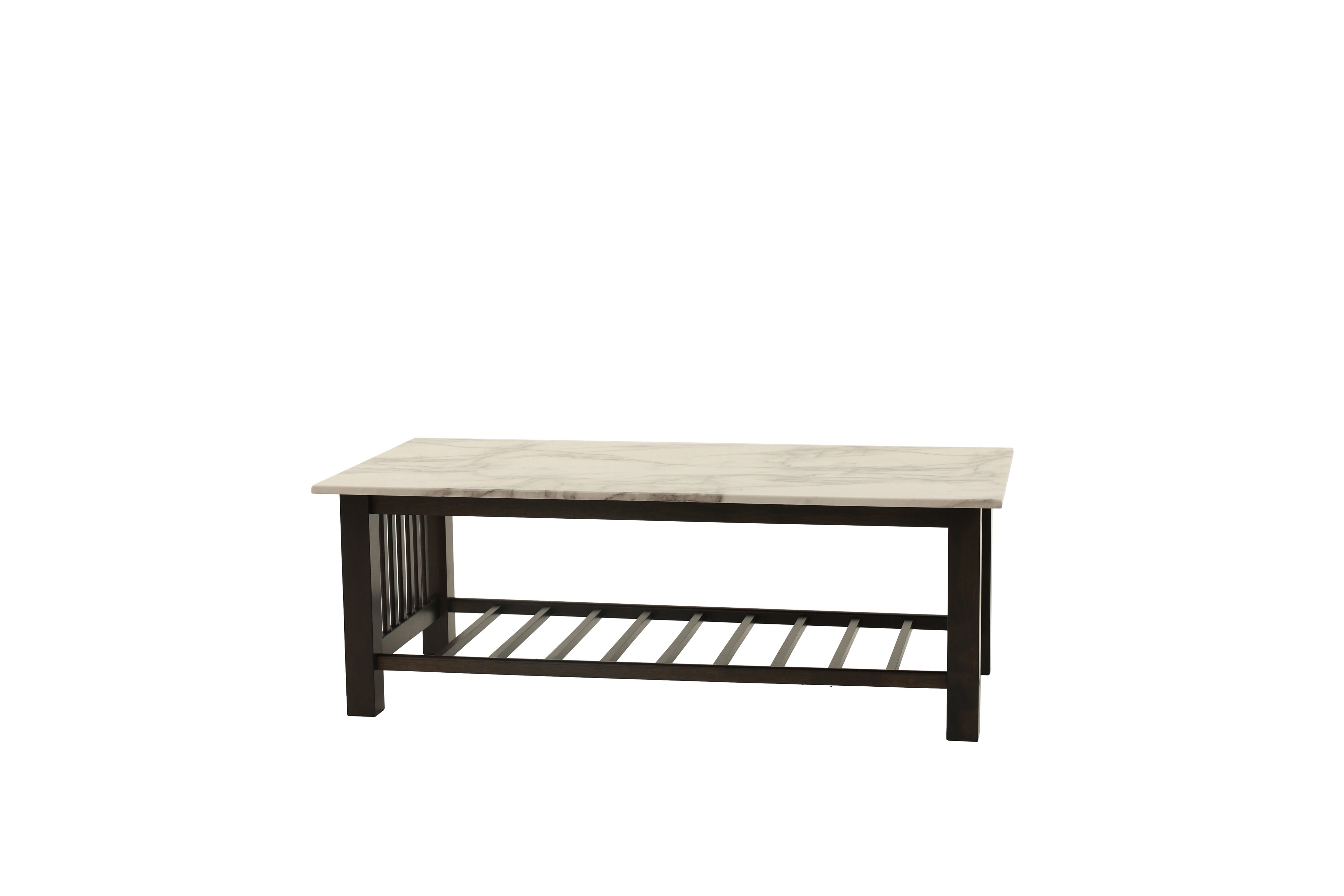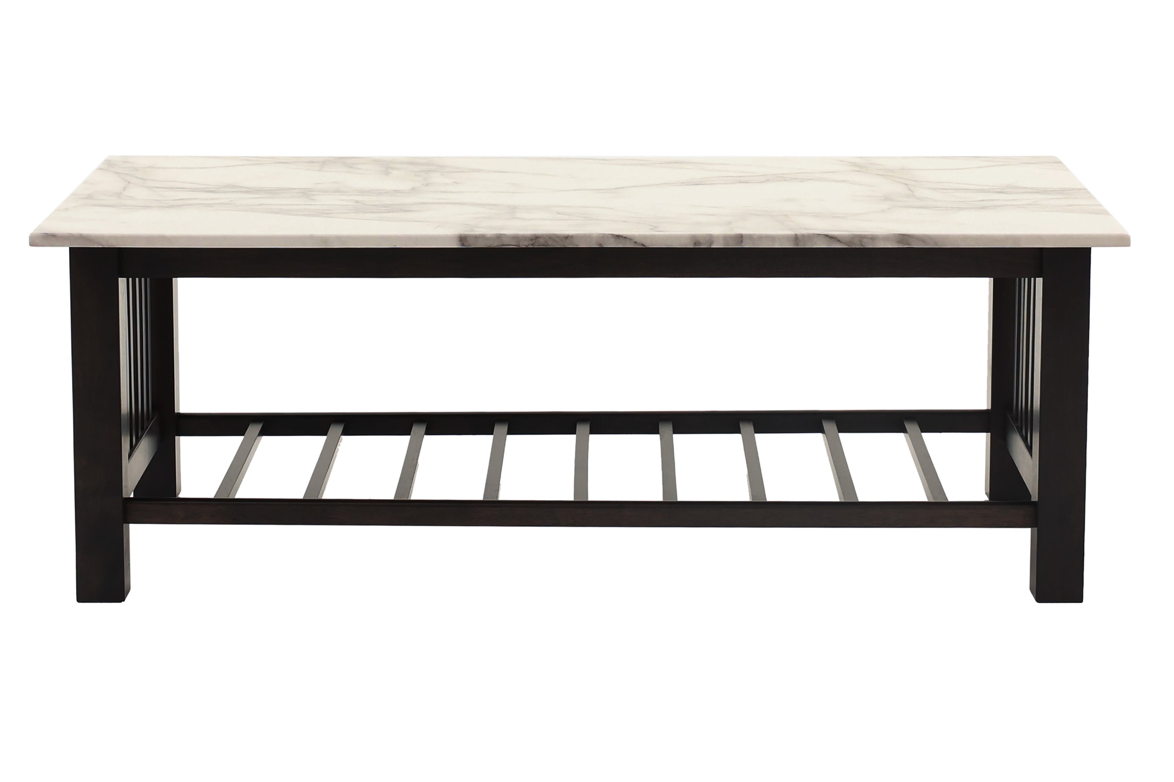 Bring contemporary elegance to your living room with this striking occasional coffee table. The faux marble top and antique walnut finish create a refined, versatile centerpiece that pairs well with modern or classic decor. Two open tiers provide functional display and storage space for books, magazines, and decorative accents, while solid legs ensure long-lasting stability and support.