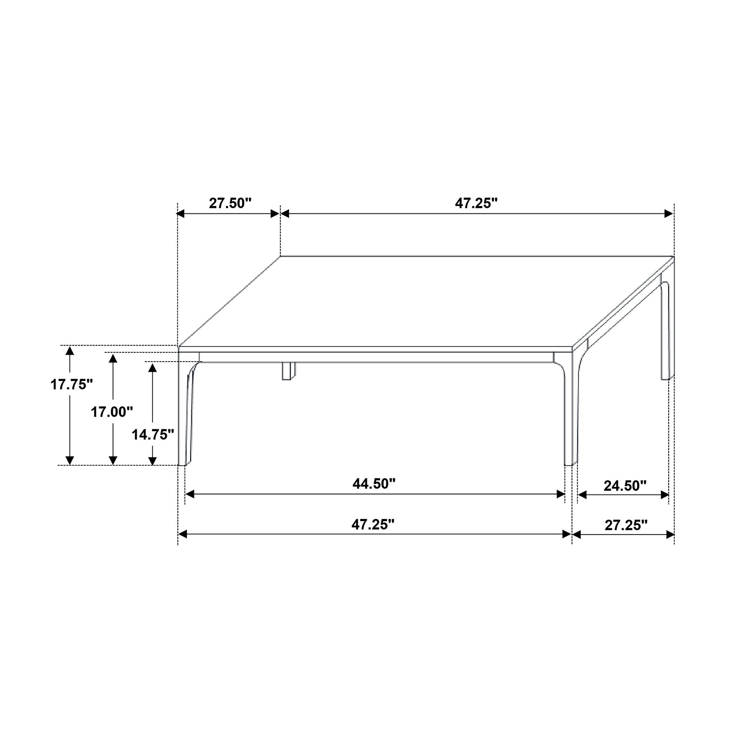 - Product Dimensions: 47.25 L x 27.5 W x 18 H