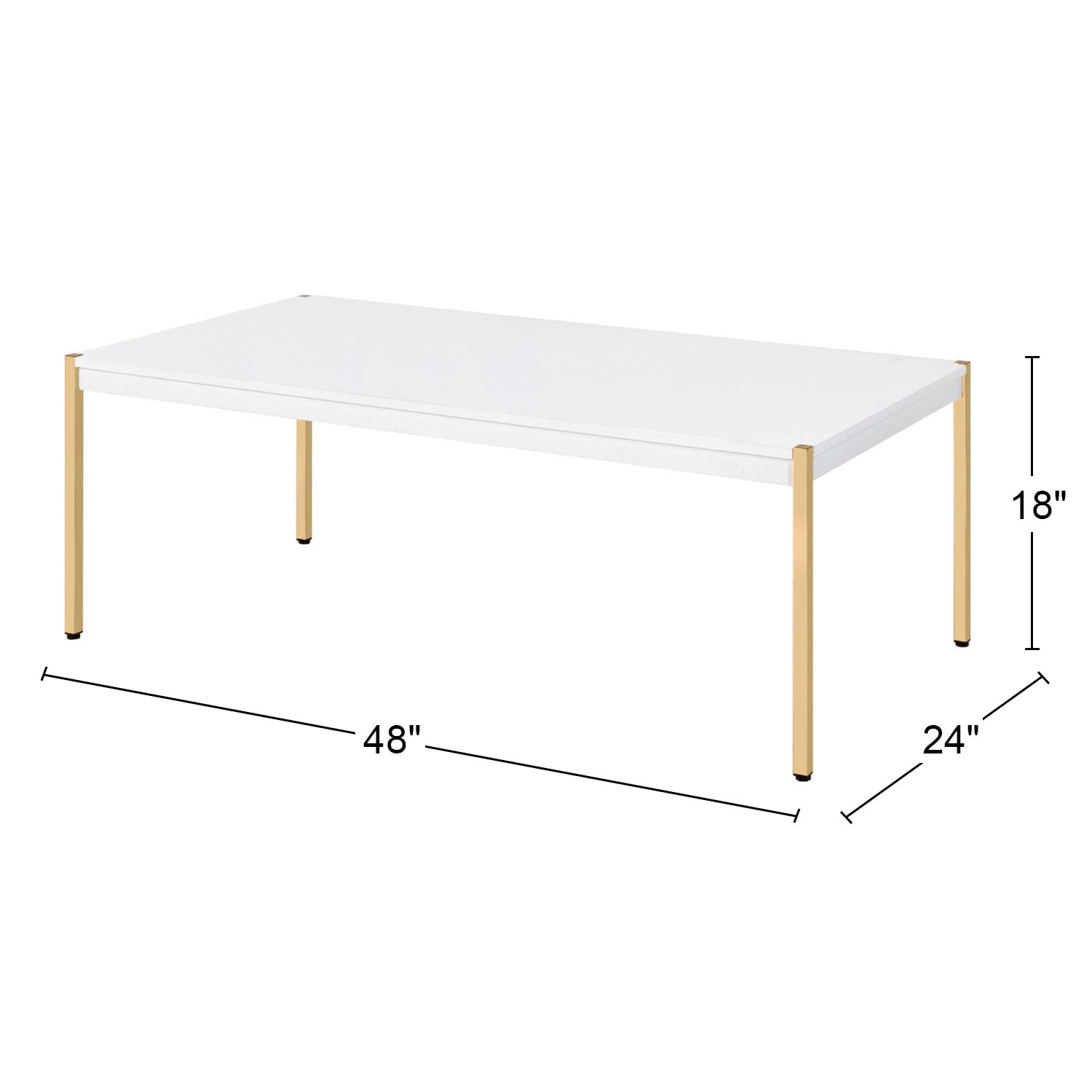 - Finish: White tabletop paired with an opulent gold finish on four legs for a chic contrast