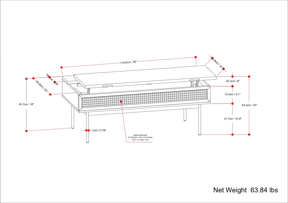 - Lift-Top & Storage: Split lift-up tabletop reveals a large concealed storage compartment plus two open compartments for magazines, remotes, and living-room essentials.