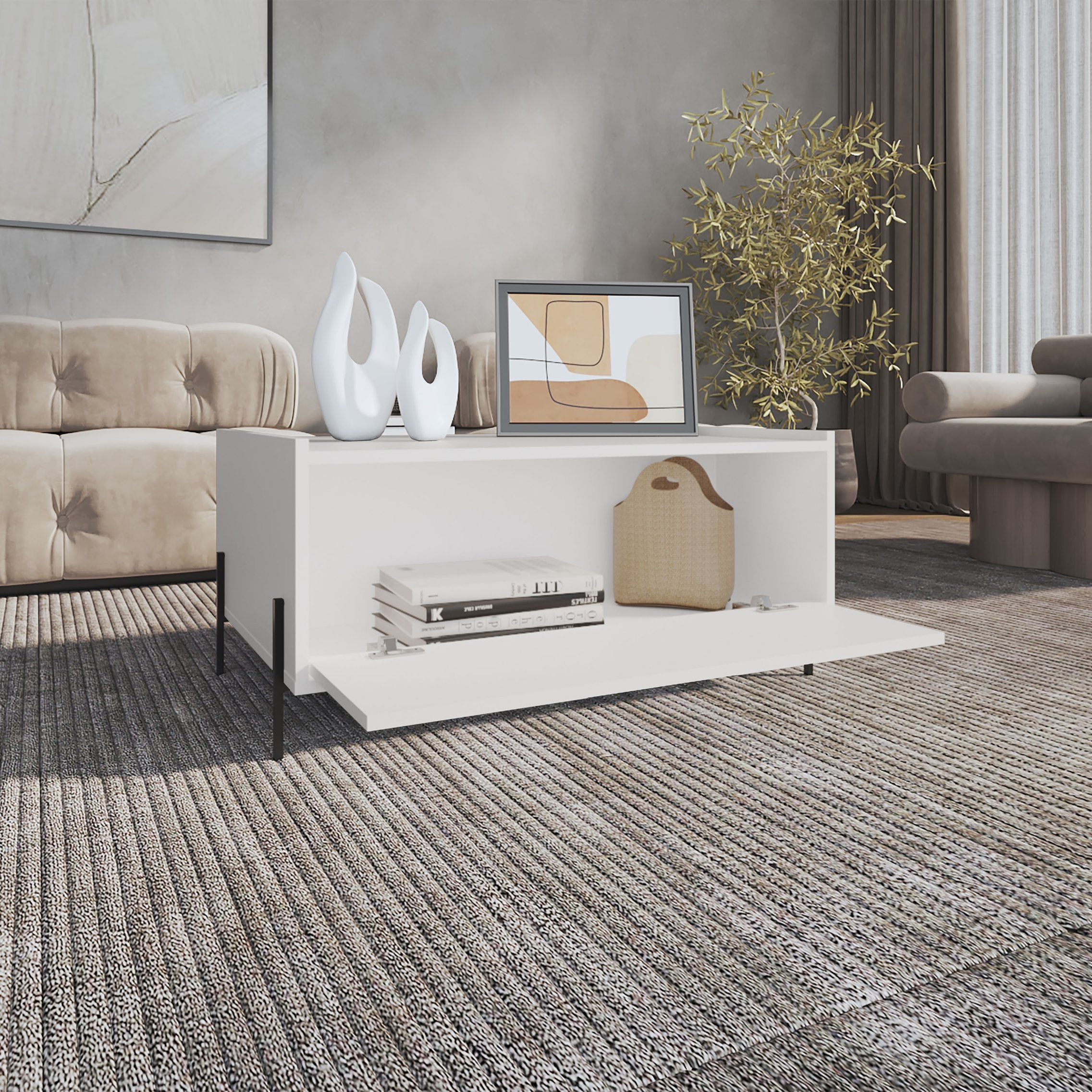 Add contemporary function and clean-lined style to your living space with this minimalistic coffee table. Designed for small to medium rooms, it combines open and concealed storage to keep essentials within reach while maintaining a tidy, modern look. Its durable particle-board construction and easy-to-clean finish make it a practical focal point for everyday use.