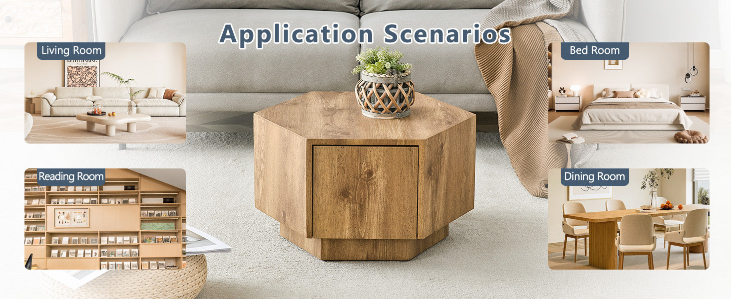 - Unique styling design: Adopting a unique hexagonal design, different from traditional square or circular coffee tables, it adds a unique geometric beauty to the space, simple and elegant without losing personality.