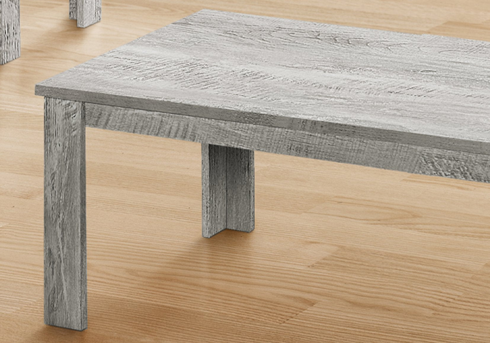 Elevate your living room with this versatile 3-piece table set — a coffee table plus two end tables — featuring a grey laminate finish that mimics natural wood grain for a refined transitional look. Designed for everyday use, the set provides generous surface area for lamps, books, drinks, and decorative accents while maintaining a clean, contemporary silhouette that complements a wide range of décor styles.