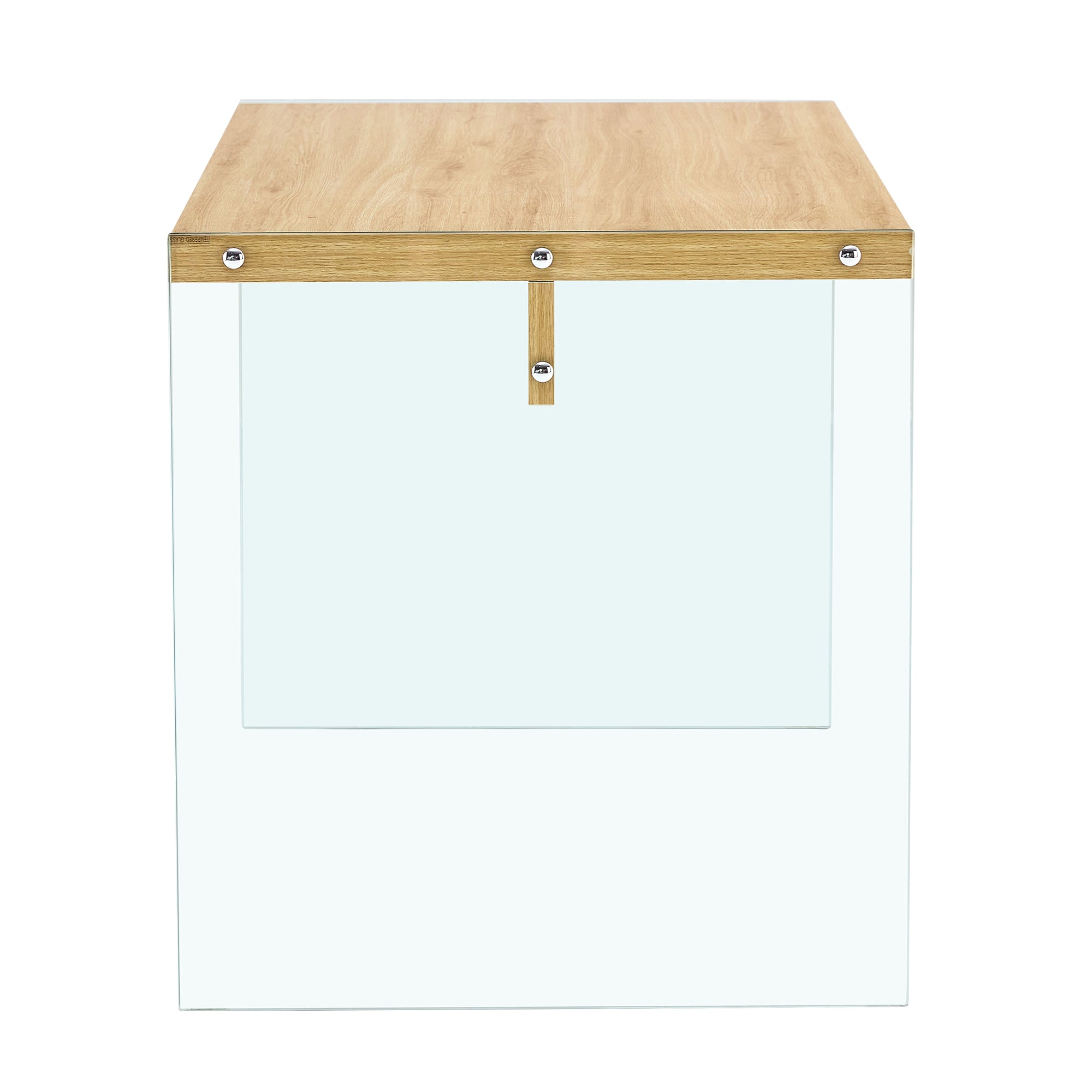 Elevate your living room with this sleek, modern coffee table that blends warm wood textures and clear tempered glass for a clean, contemporary look. Built with durable MDF and wood-grain finish, supported by tempered glass sides, it offers a sturdy platform for everyday use while keeping a light, airy visual profile.