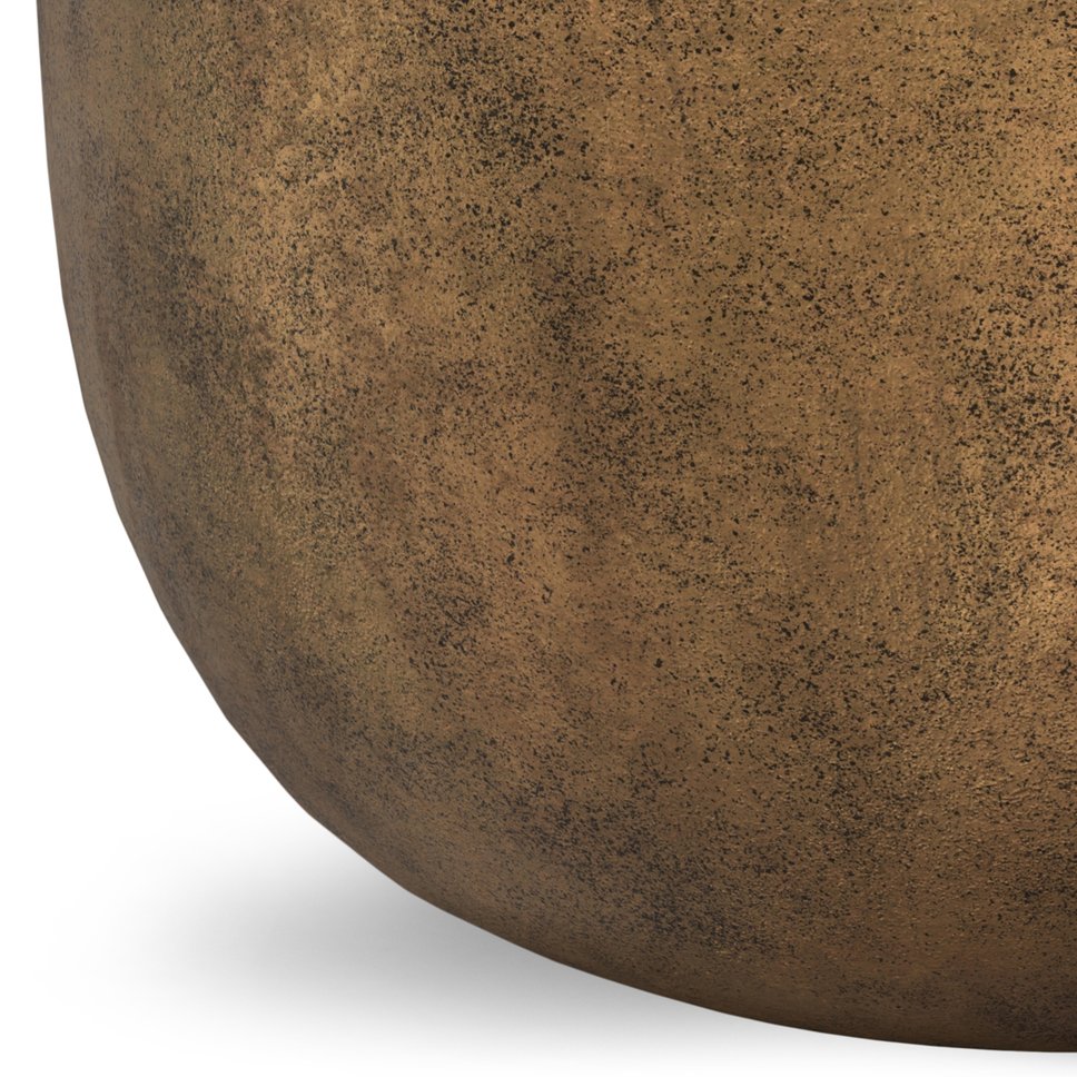 Elevate your living space with this handcrafted cast aluminum coffee table, blending timeless design with durable construction. Its drum silhouette and raised circular tabletop create a striking focal point, while the antique brass finish and textured details give each piece a unique, artisanal character. Versatile and fully assembled, it’s ideal as a coffee table, cocktail table, or decorative accent in a variety of rooms.