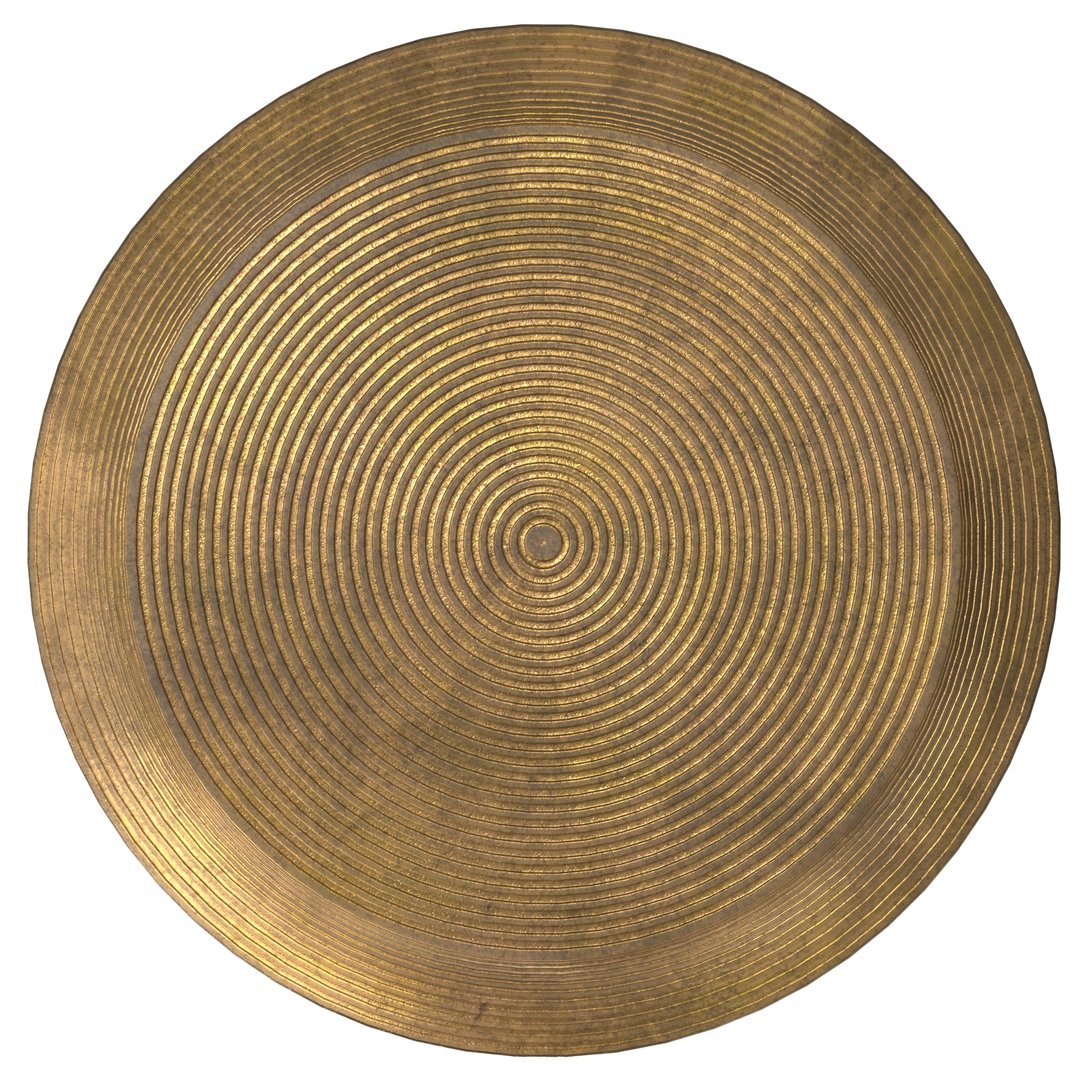 - Finish: Hand-finished in Antique Brass with a subtle base texture and ringed tabletop pattern—no two pieces are exactly alike