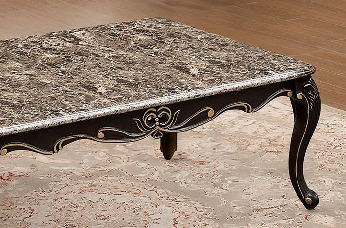 Elevate your living room with this elegant two-piece table set that blends traditional charm with refined craftsmanship. The marble-look tops, carved curved details, and cabriole legs with subtle gold highlights create a timeless focal point—perfect for classic or formal interiors—while offering durable, functional surfaces for everyday use and entertaining.