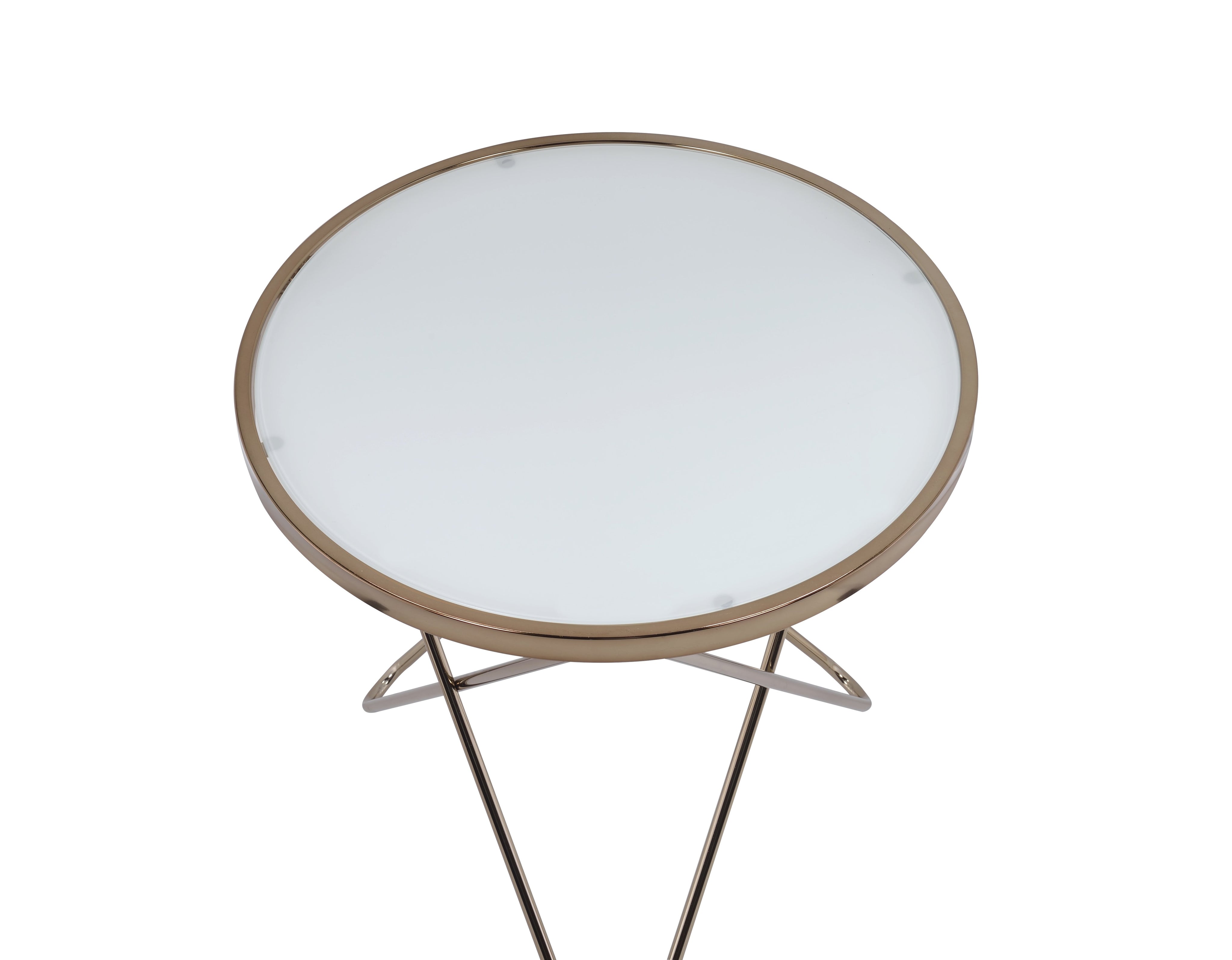 - Color: Champagne finish metal with frosted glass top